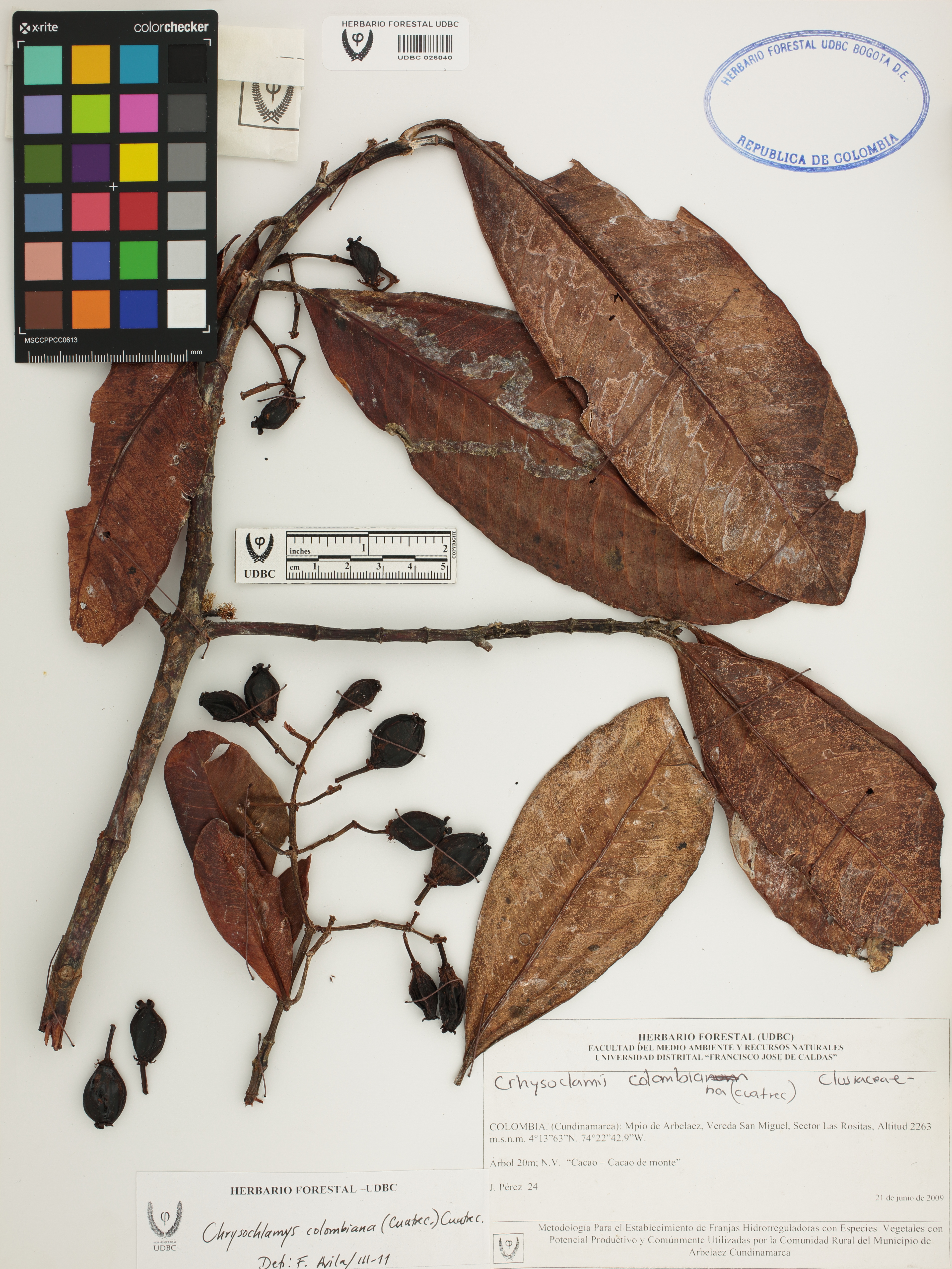 Fotografía del ejemplar Pérez, J. 24, determinado como Chrysochlamys colombiana en el año 2011