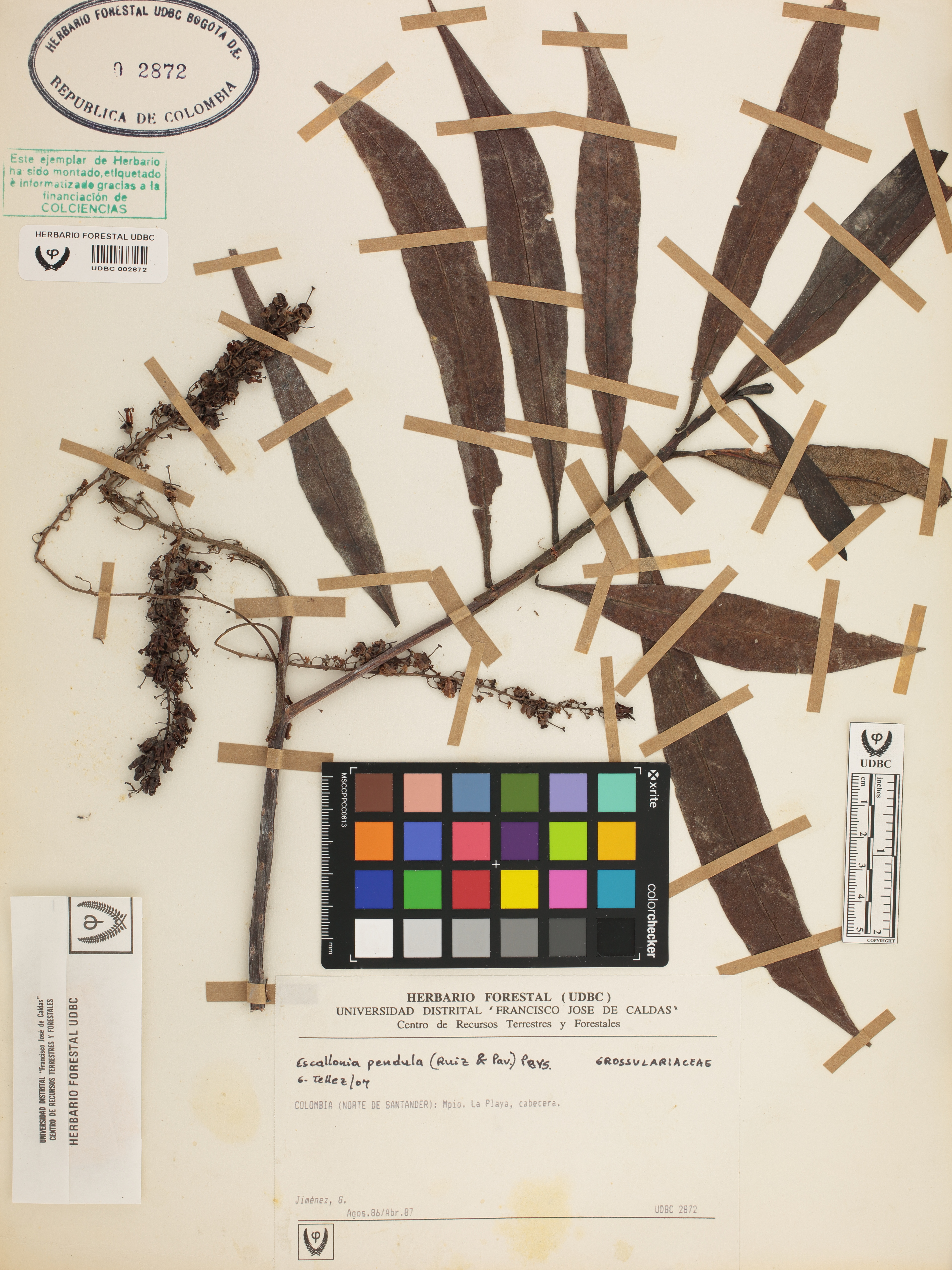 Fotografía del ejemplar Jiménez, G., determinado como Escallonia pendula en el año 2007