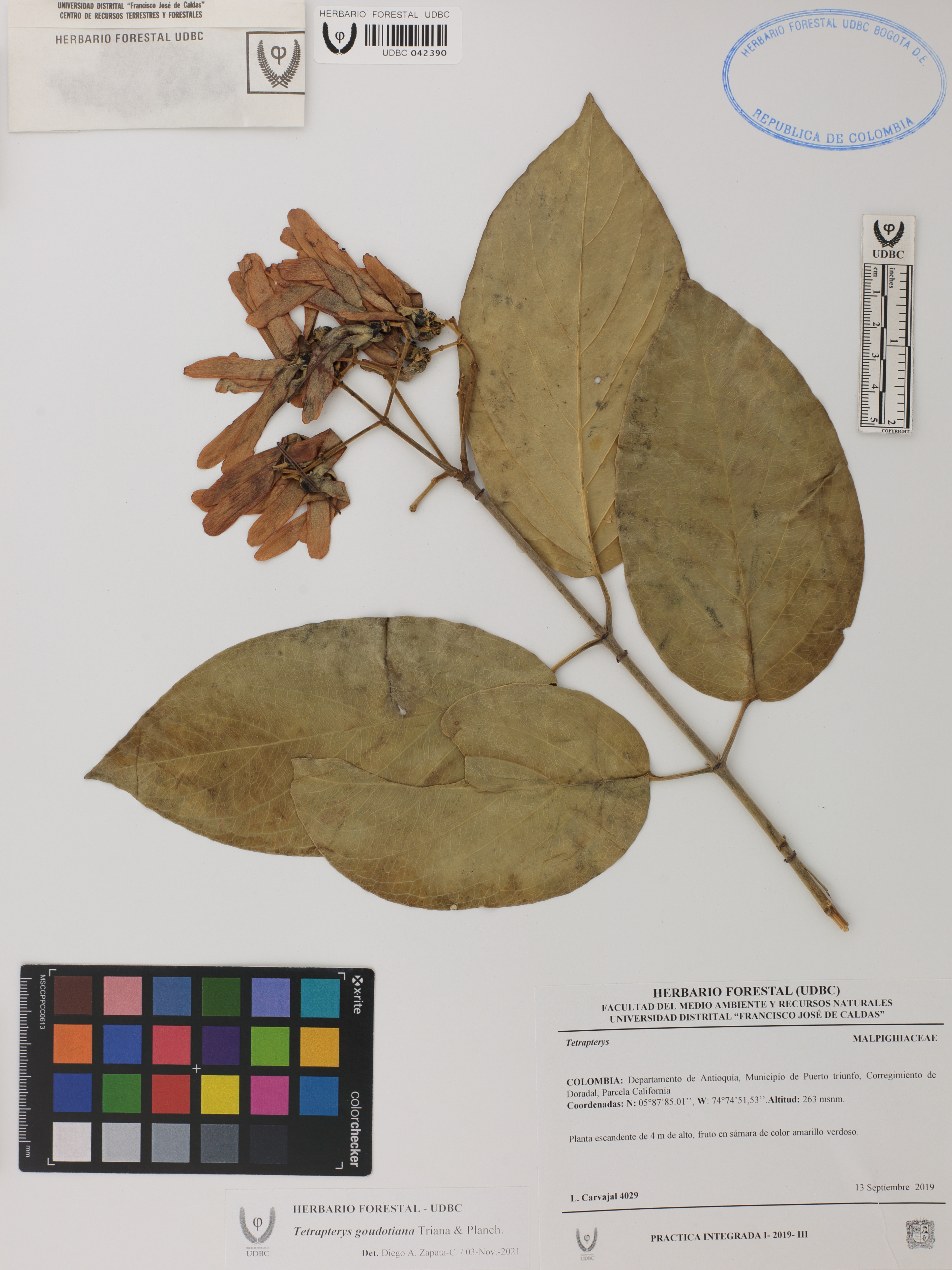 Fotografía del ejemplar Carvajal, L. 4029, determinado como Tetrapterys goudotiana en el año 2021
