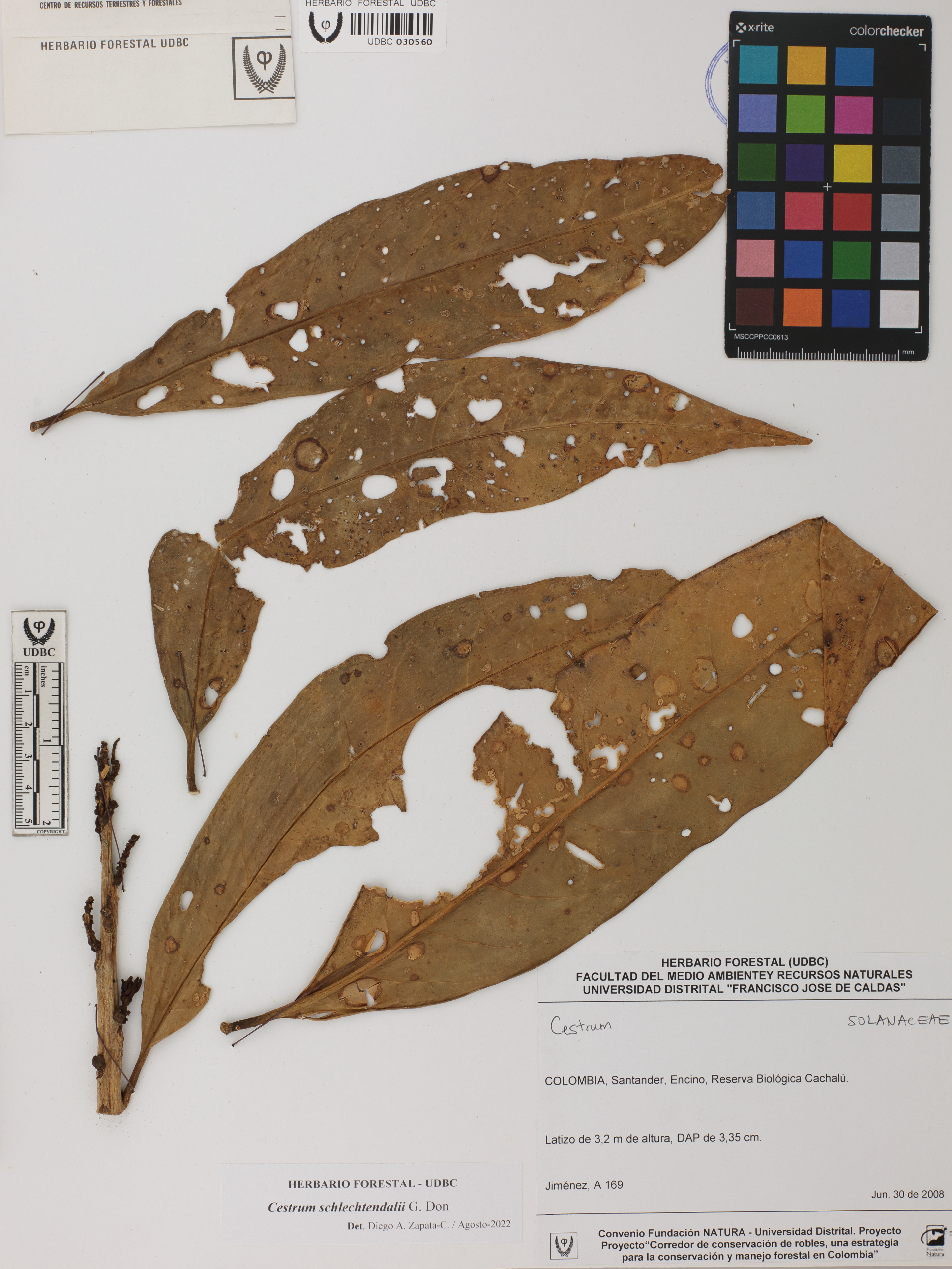 Fotografía del ejemplar Jiménez, A. 169, determinado como Cestrum schlechtendalii en el año 2022