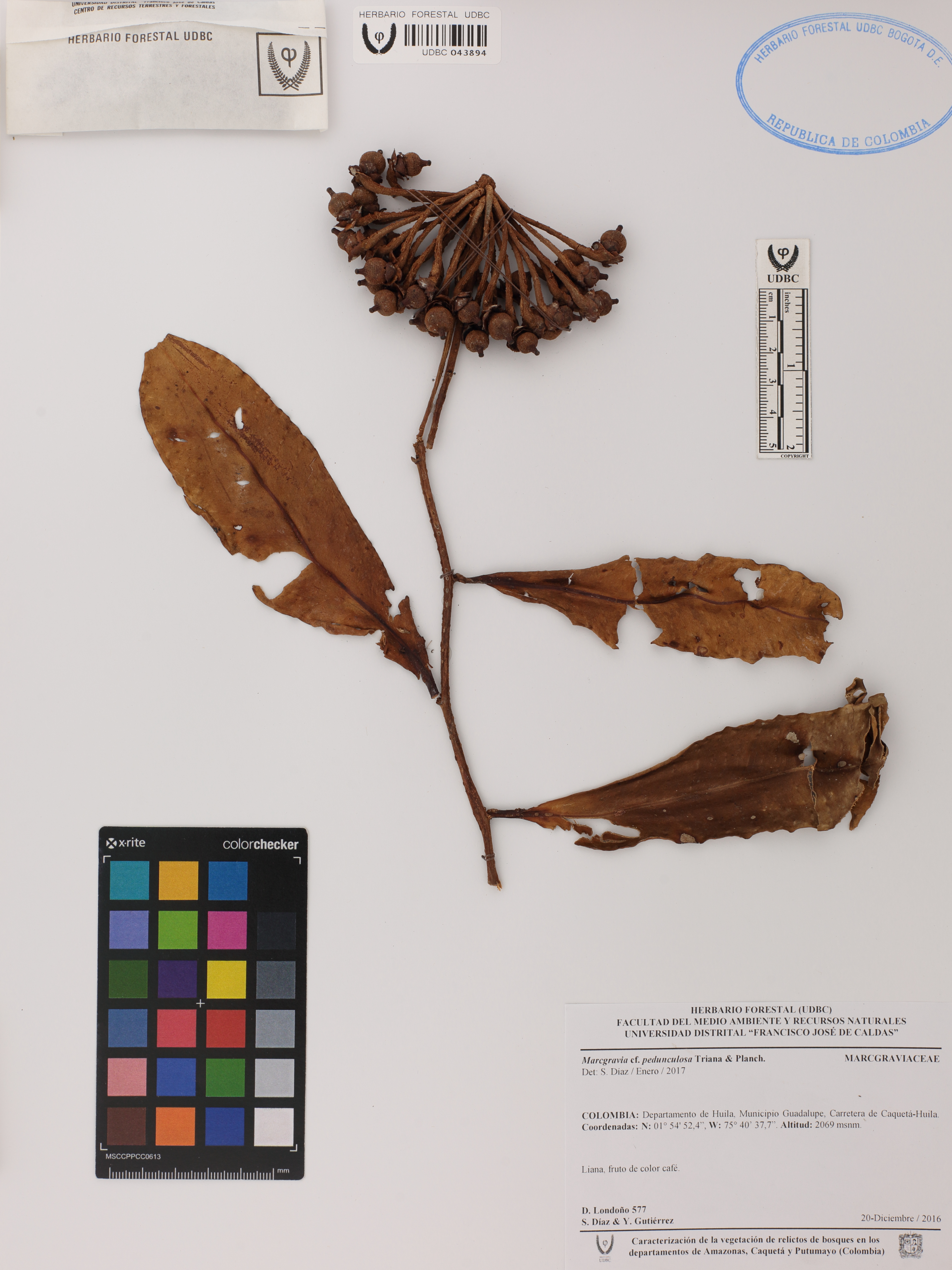 | dc.description | Fotografía del ejemplar Londoño, D. 577, determinado como Marcgravia pedunculosa en el año 2017 | |