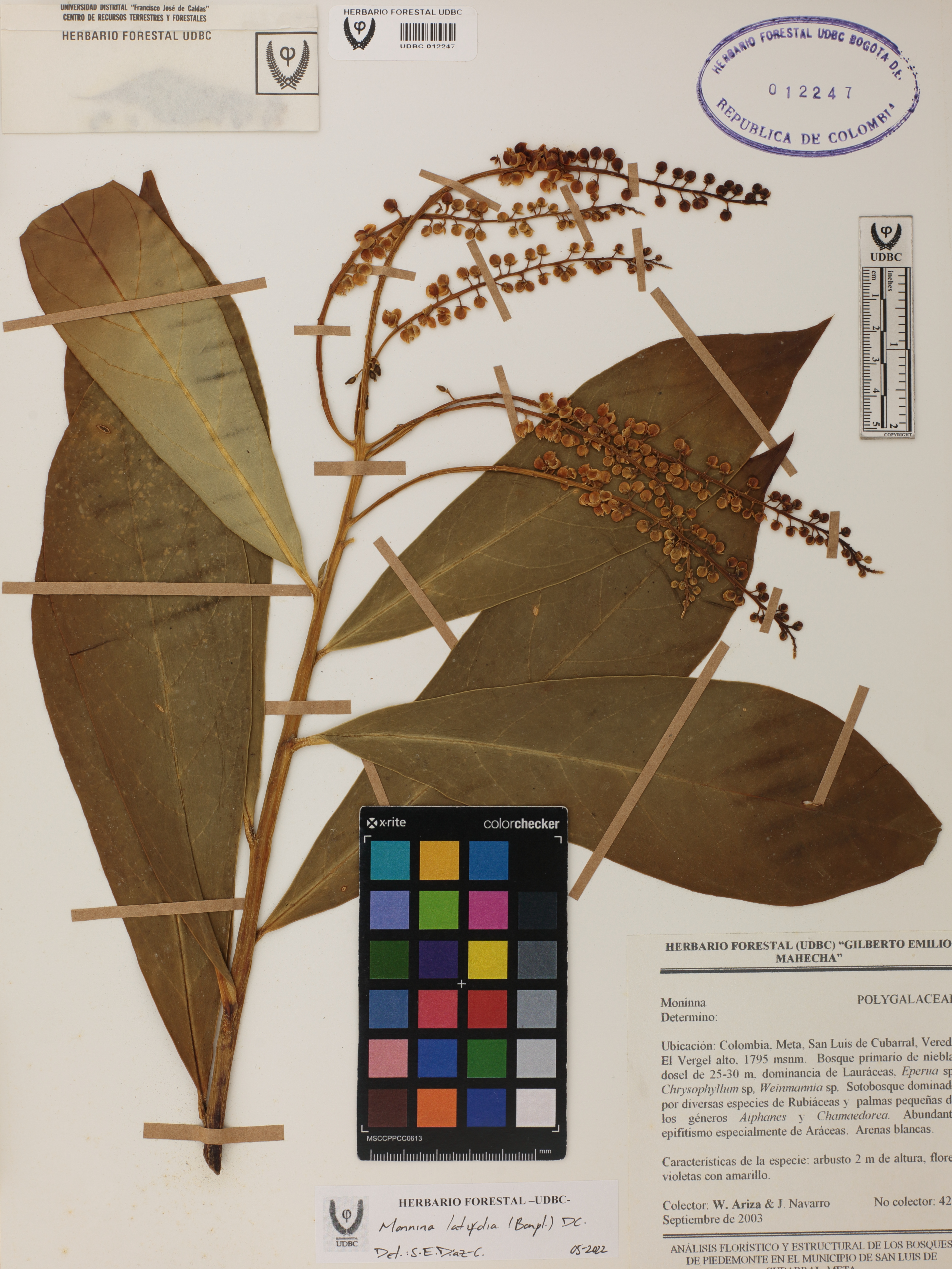 Fotografía del ejemplar Ariza, W. 427, determinado como Monnina latifolia en el año 2022