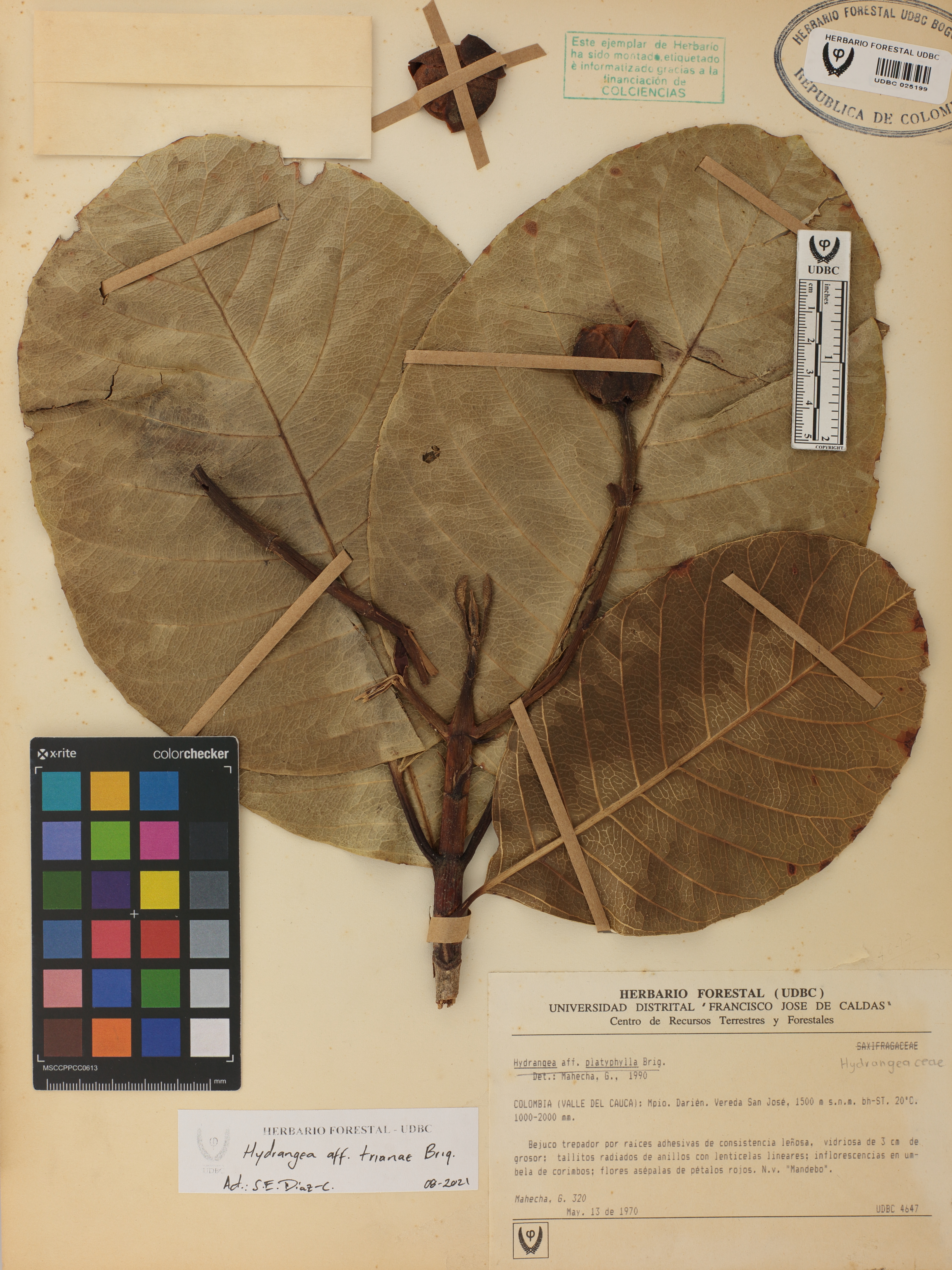 Fotografía del ejemplar Mahecha, G. 320, determinado como Hydrangea trianae en el año 1990