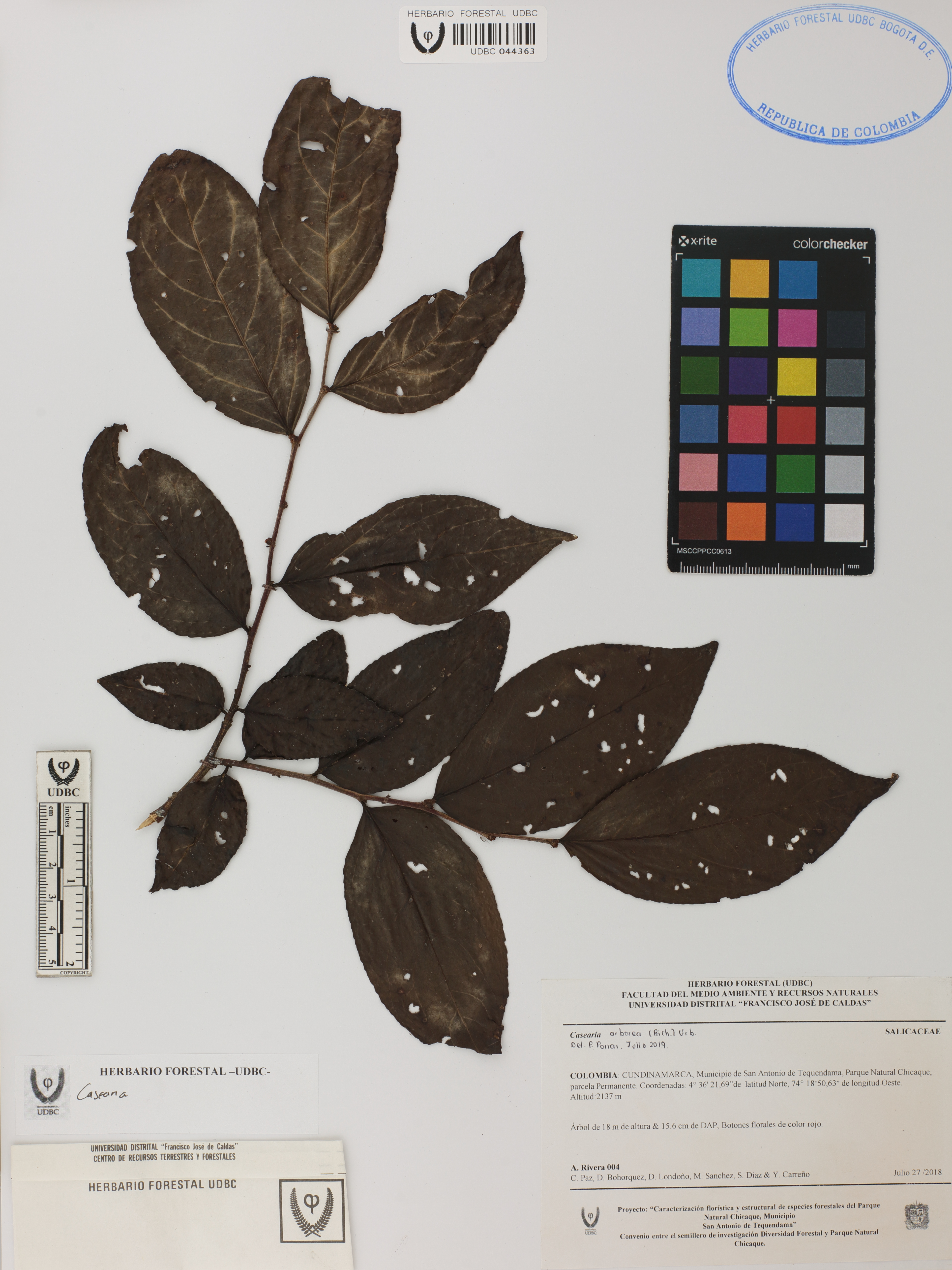 Fotografía del ejemplar Rivera, A. 4, determinado como Casearia sp.