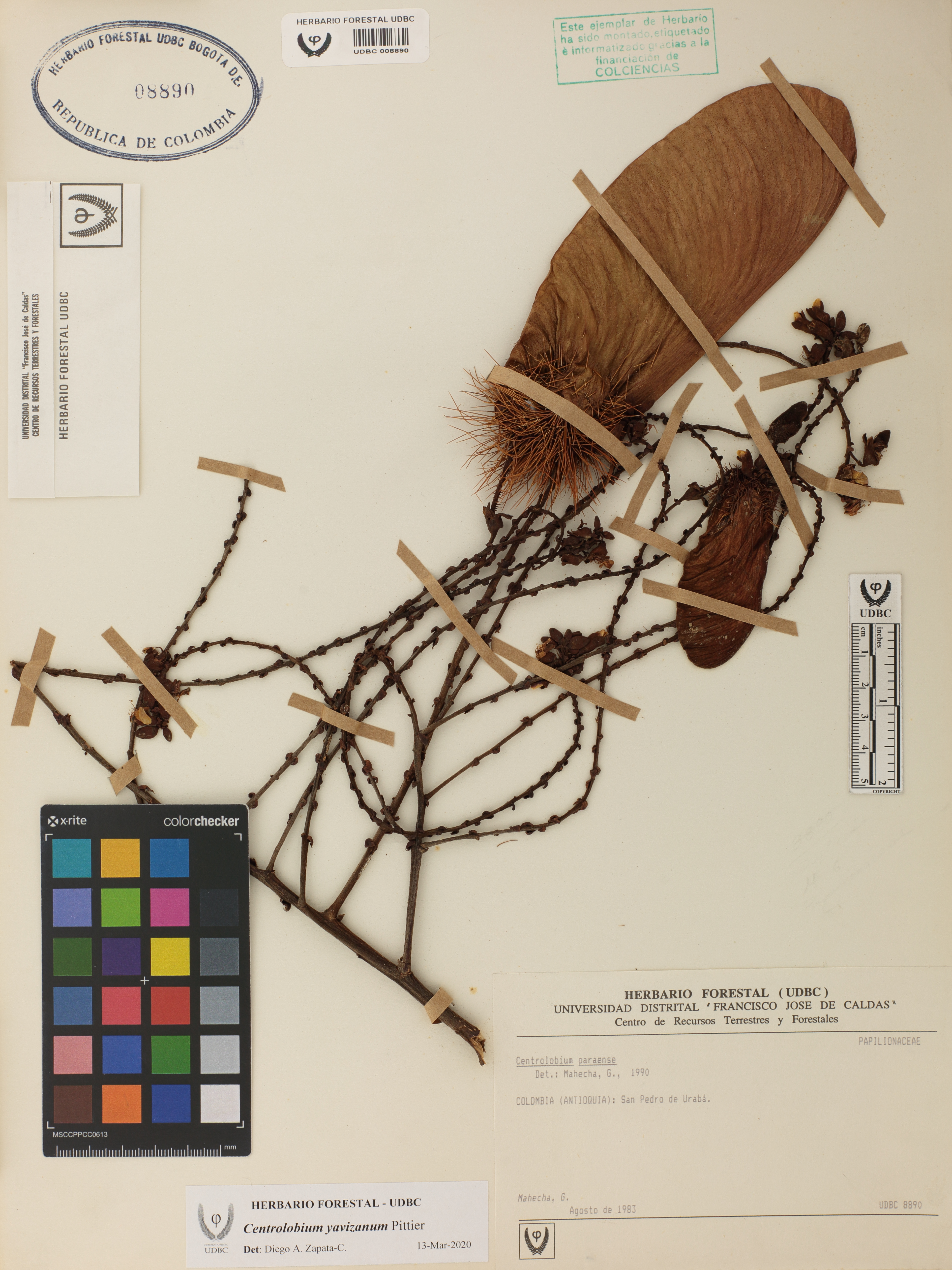 Fotografía del ejemplar Mahecha, G., determinado como Centrolobium yavizanum en el año 2020