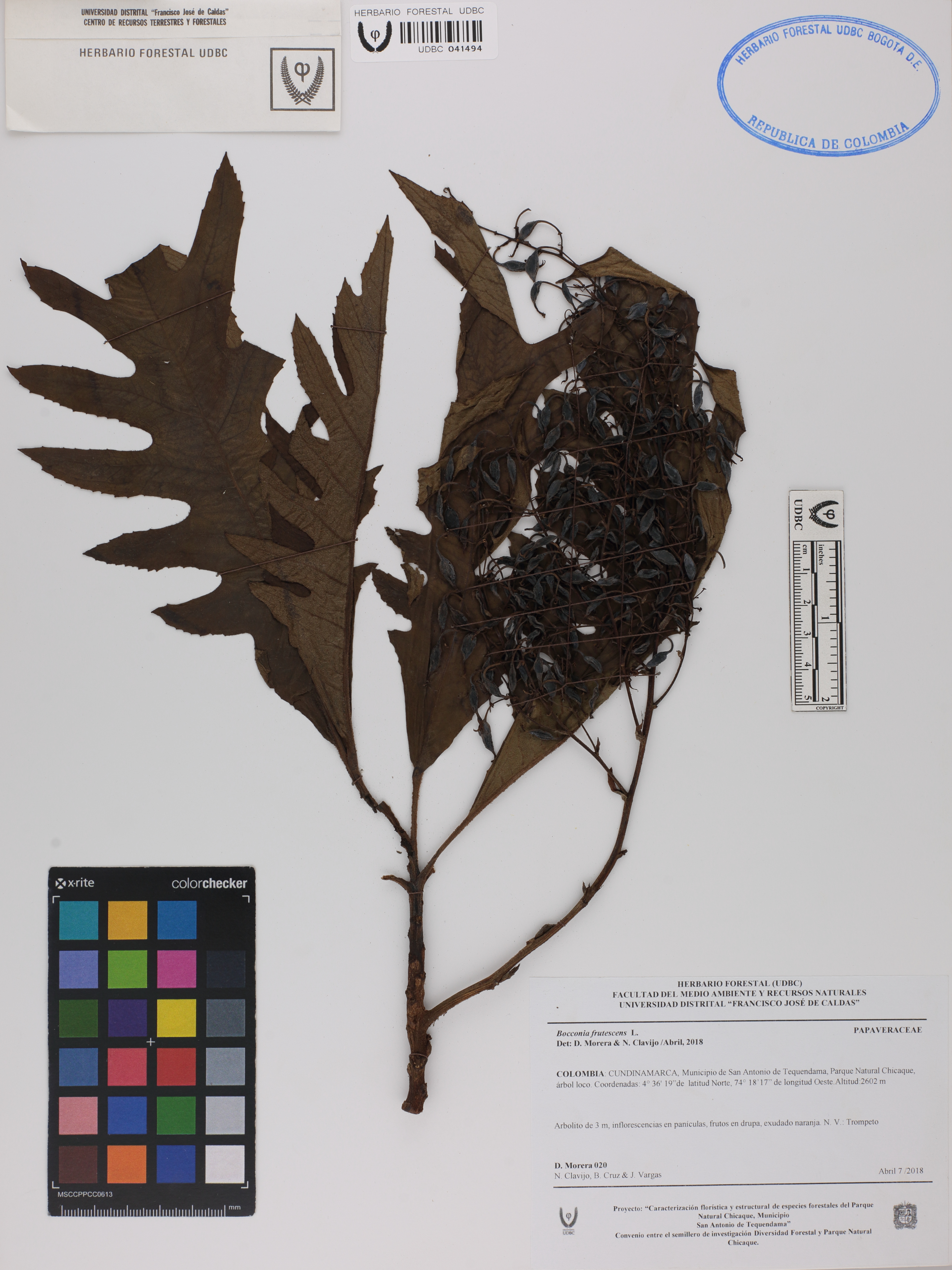 Fotografía del ejemplar Morera, D. 20, determinado como Bocconia frutescens en el año 2018
