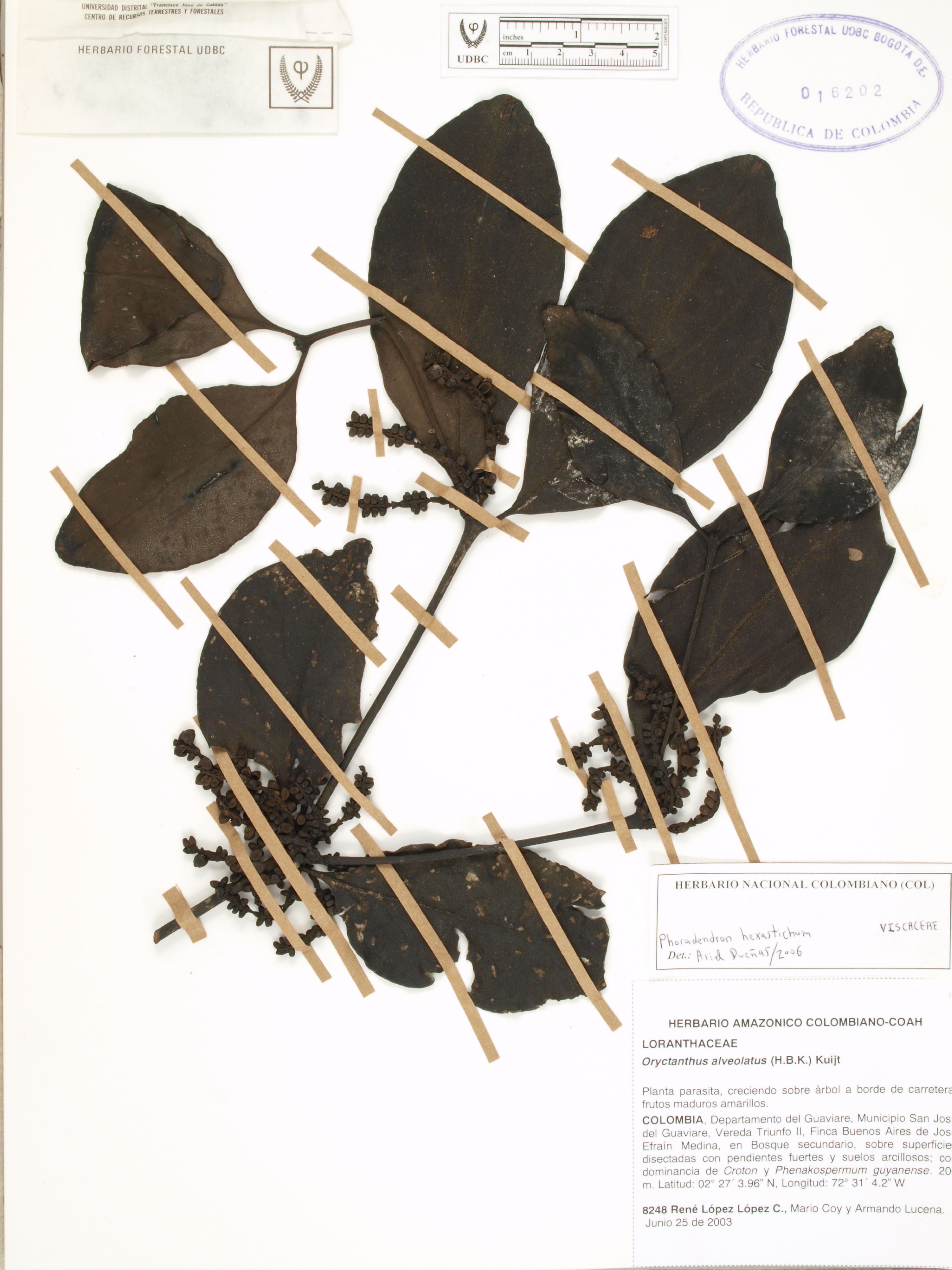 Fotografía del ejemplar López, R. 8248, determinado como Phoradendron hexastichum en el año 2006