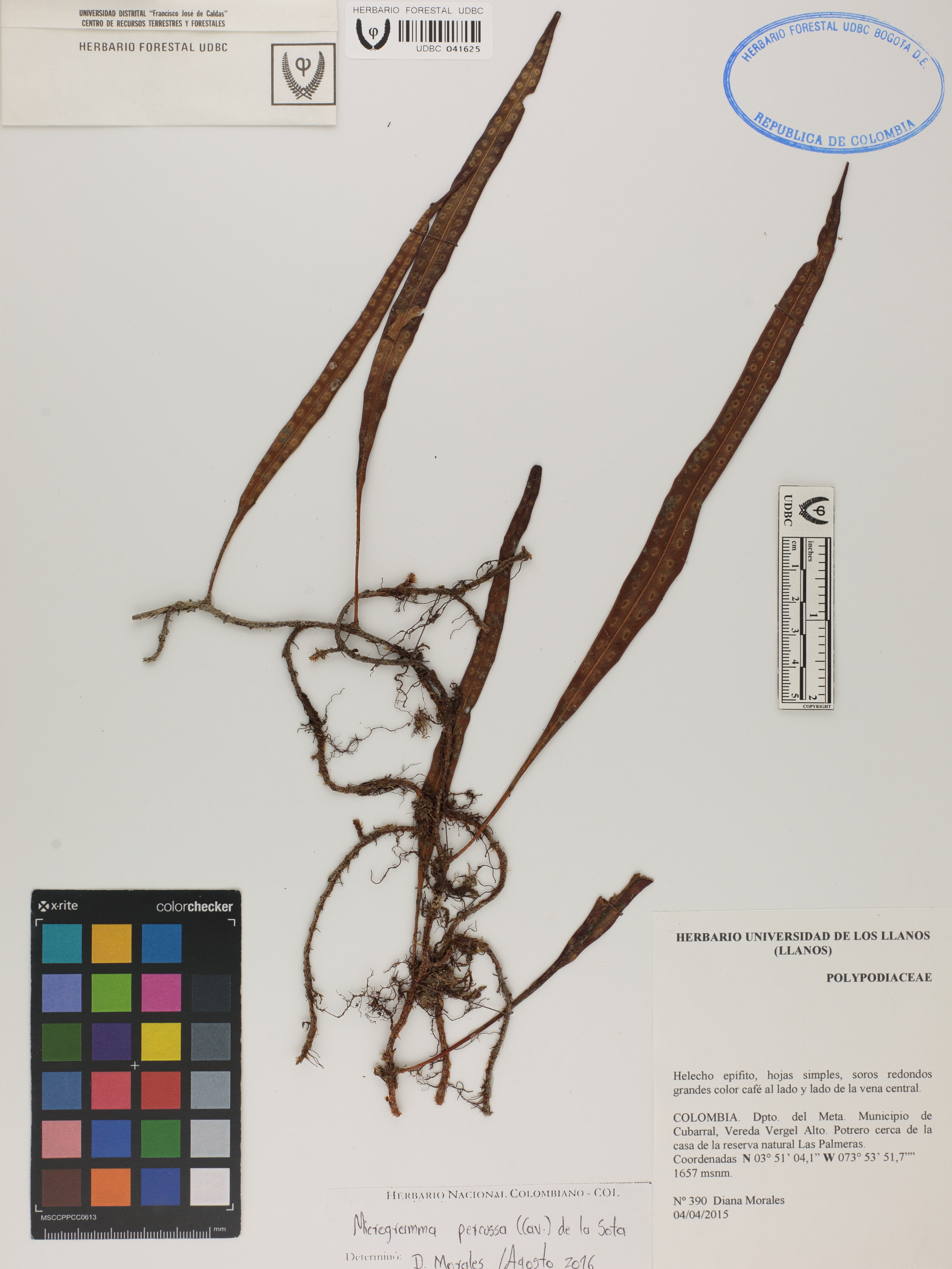 Fotografía del ejemplar Morales, D. 390, determinado como Microgramma percussa en el año 2016