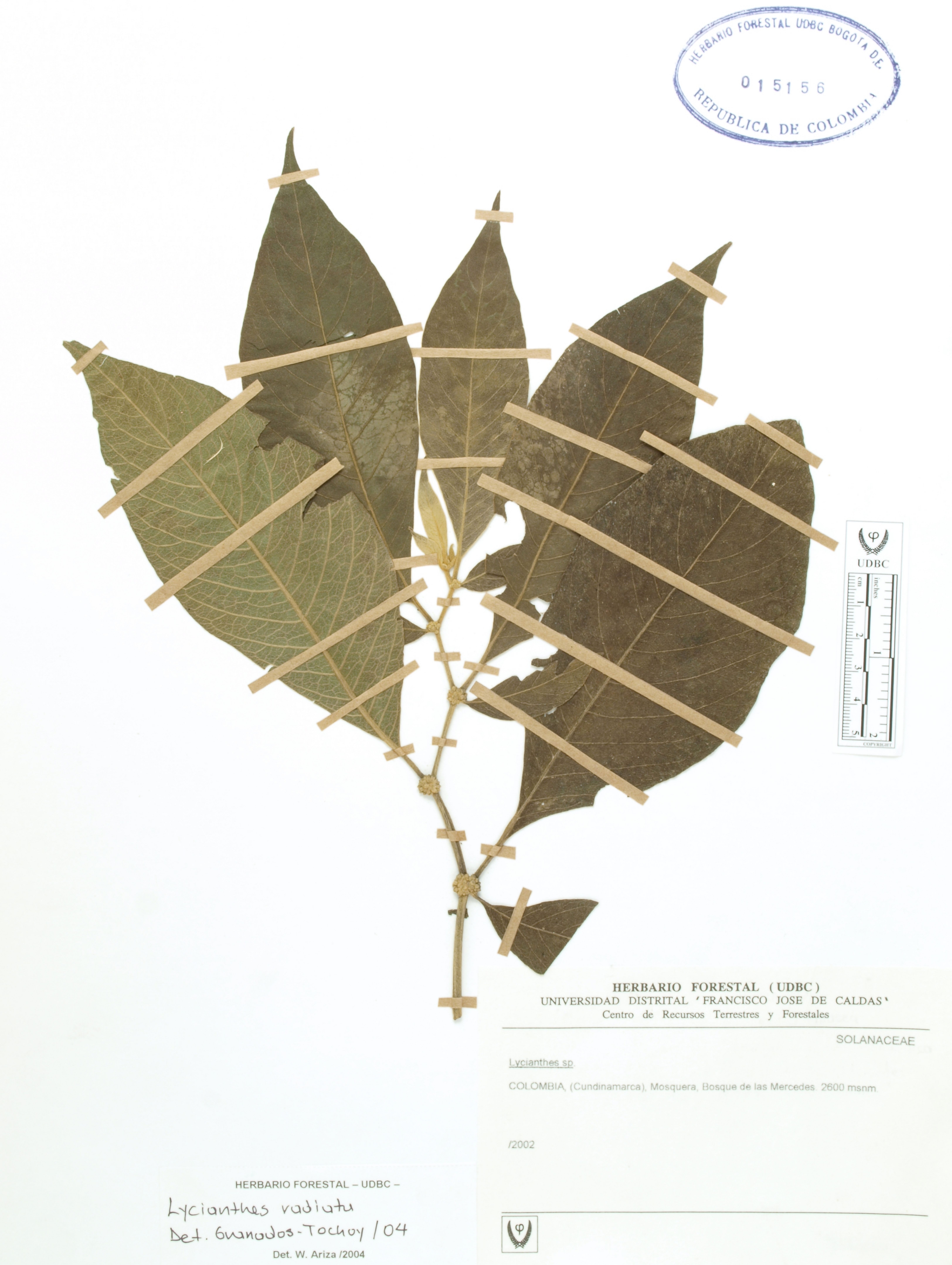 Fotografía del ejemplar SD, determinado como Lycianthes radiata en el año 2004