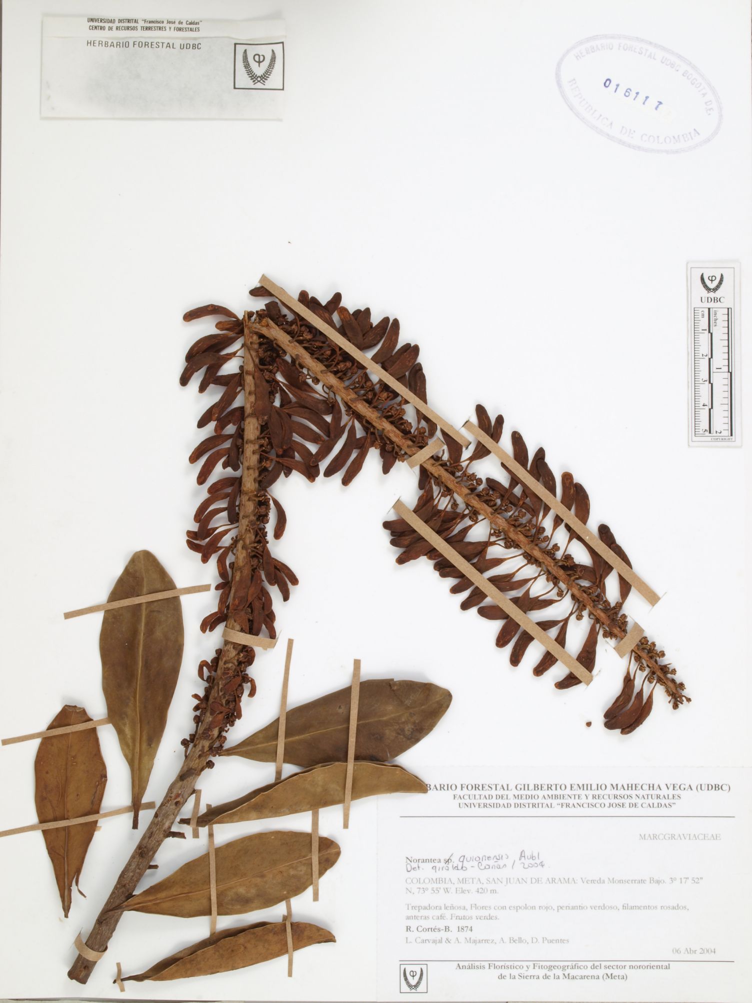 Fotografía del ejemplar Cortés-B., R. 1874, determinado como Norantea guianensis en el año 2004