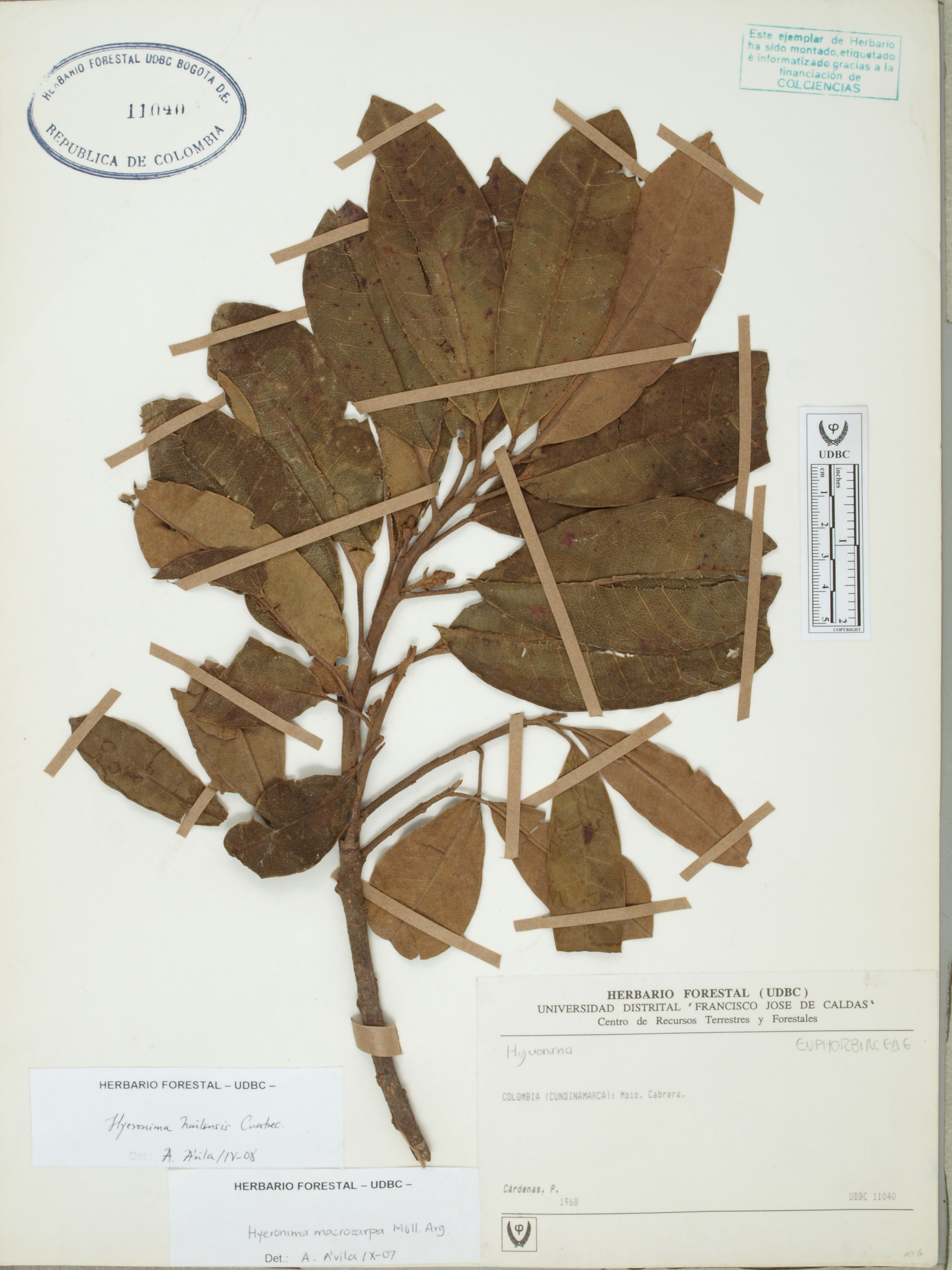 | dc.description | Fotografía del ejemplar Cárdenas, P., determinado como Hieronyma huilensis en el año 2008 | |