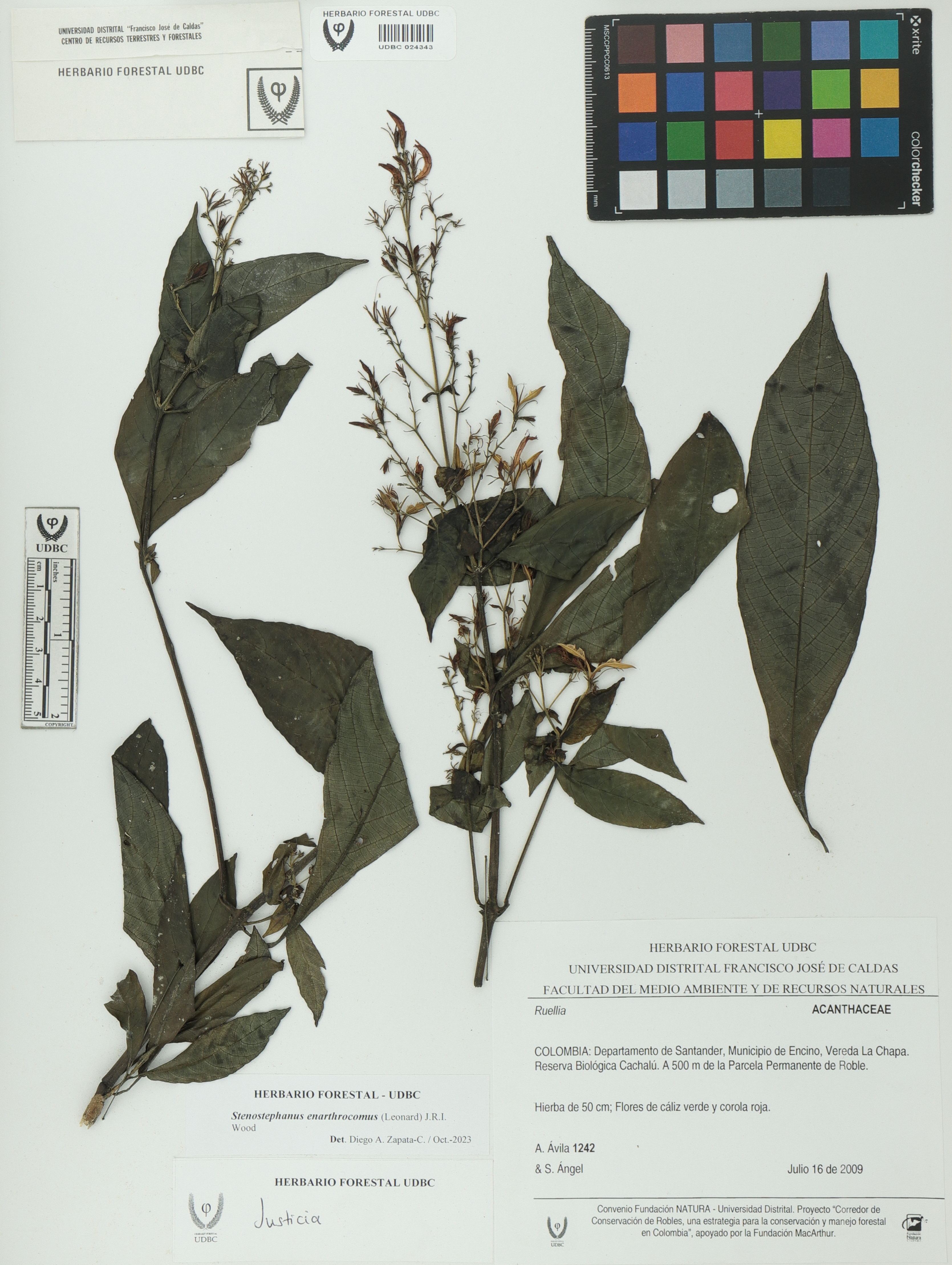 Fotografía del ejemplar Ávila, A. 1242, determinado como Stenostephanus enarthrocomus en el año 2023