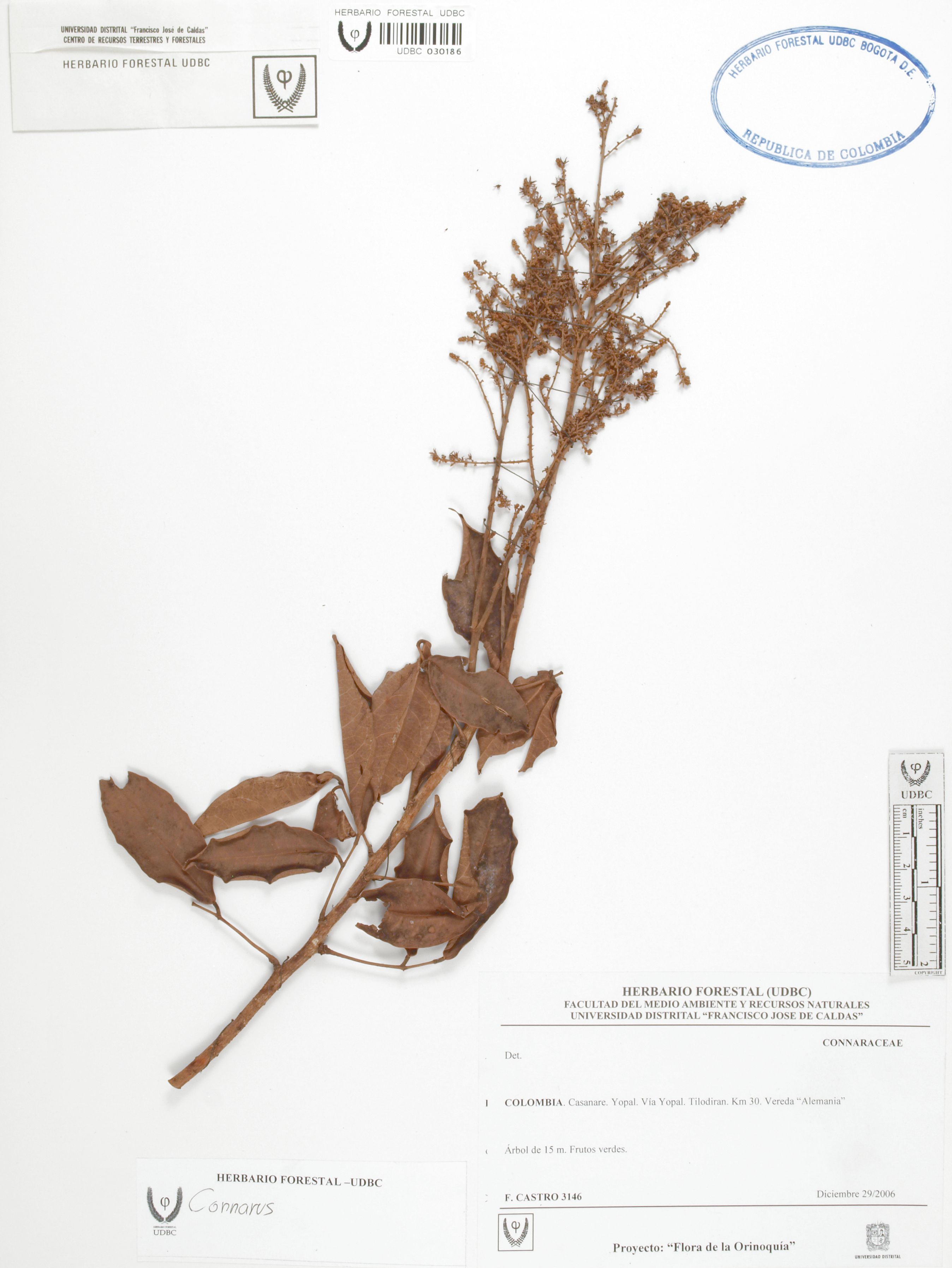 Fotografía del ejemplar Castro, F. 3146, determinado como Connarus sp. en el año 2006