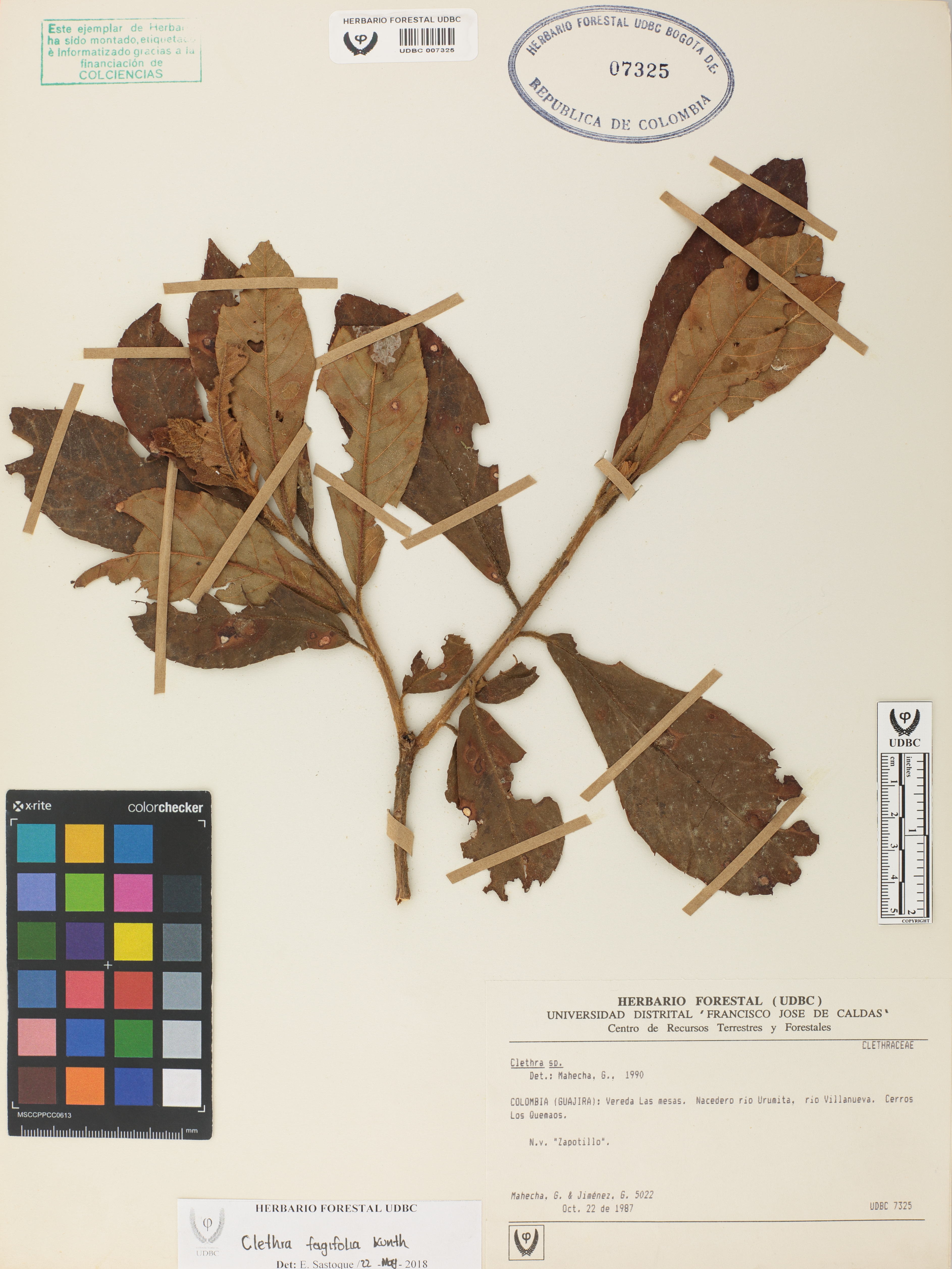 Fotografía del ejemplar Mahecha, G. 5022, determinado como Clethra fagifolia en el año 2018
