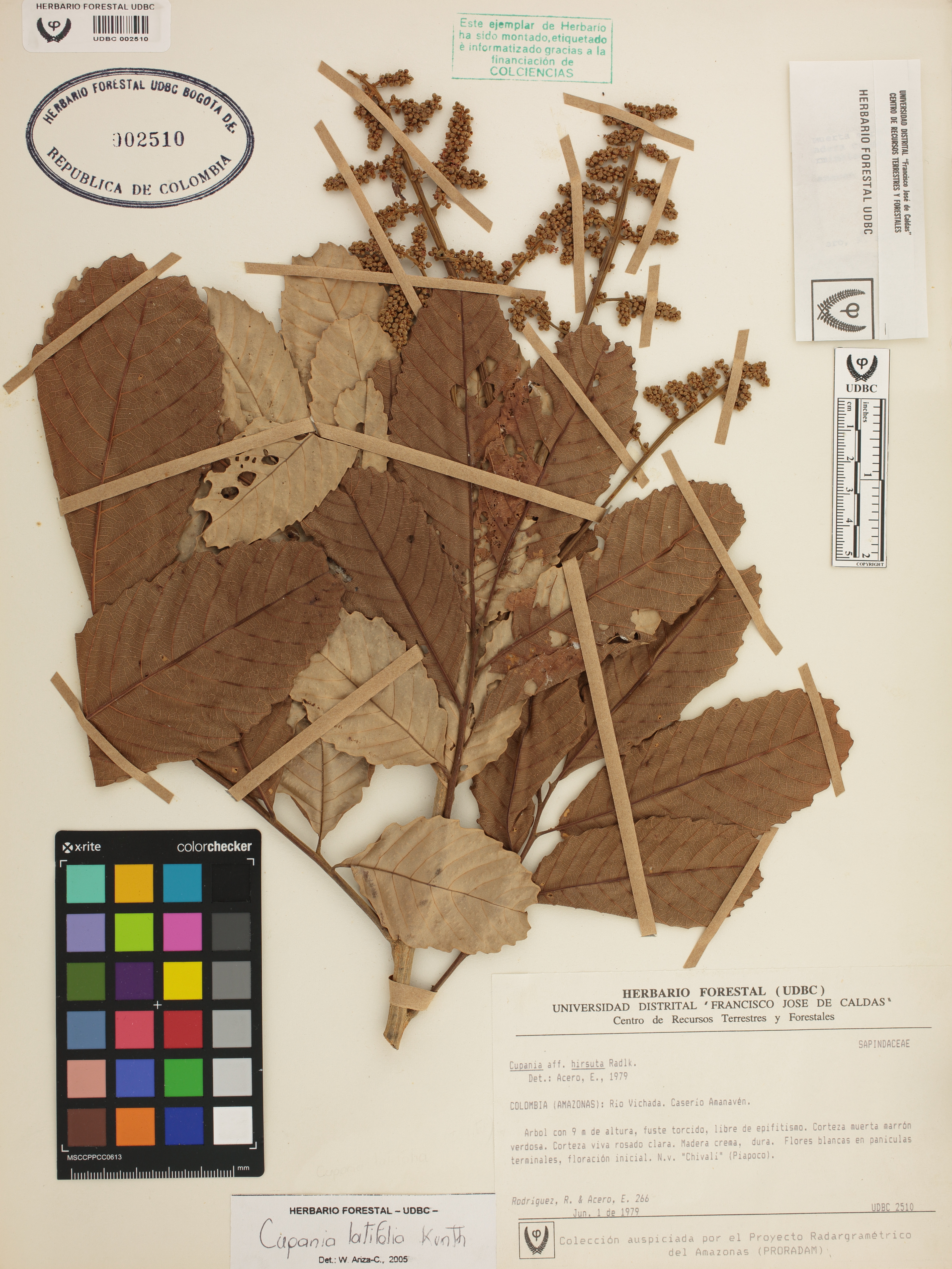 Fotografía del ejemplar Rodríguez, R. 266, determinado como Cupania latifolia en el año 2005