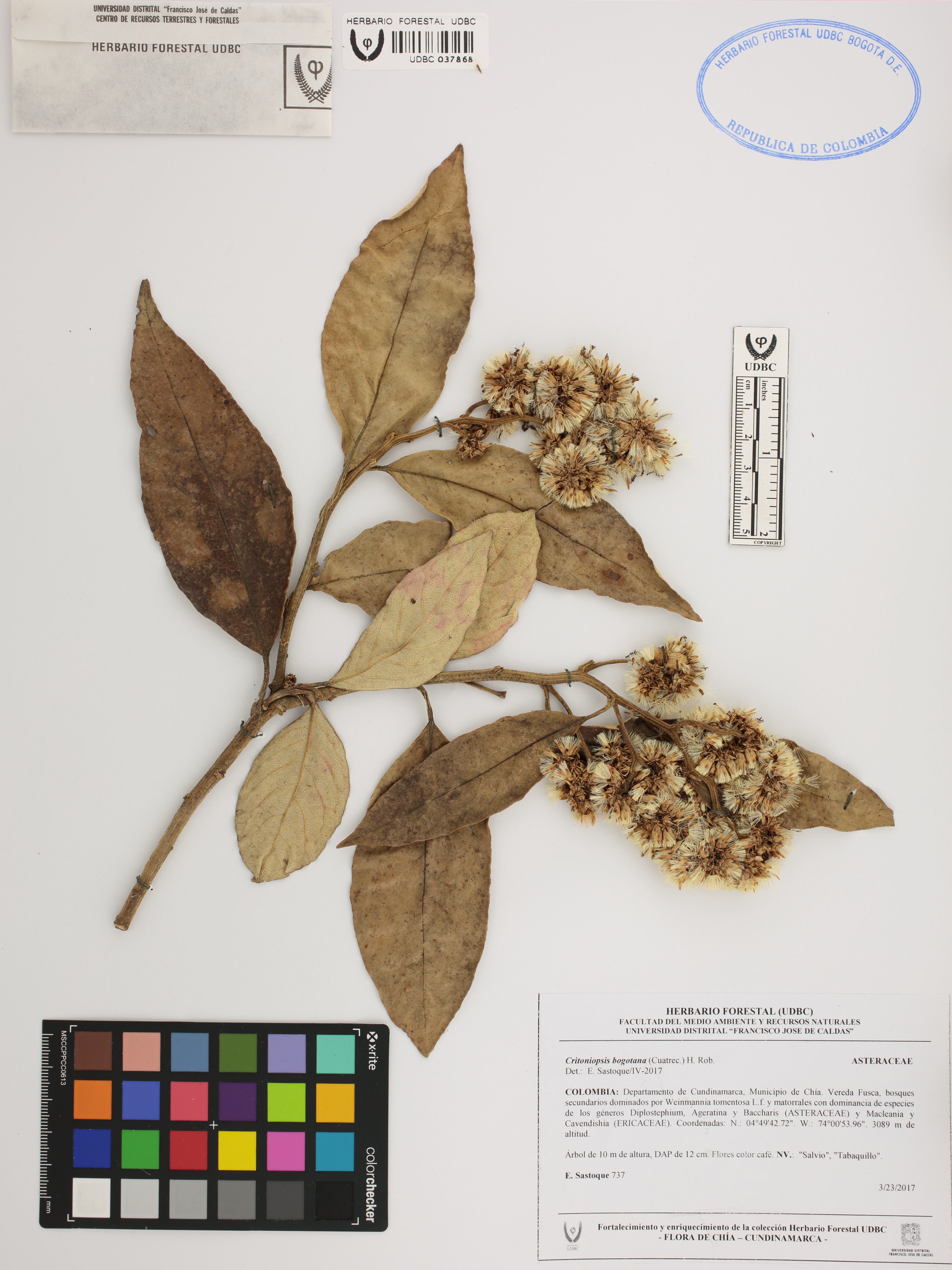 Fotografía del ejemplar Sastoque, E. 737, determinado como Critoniopsis bogotana en el año 2017