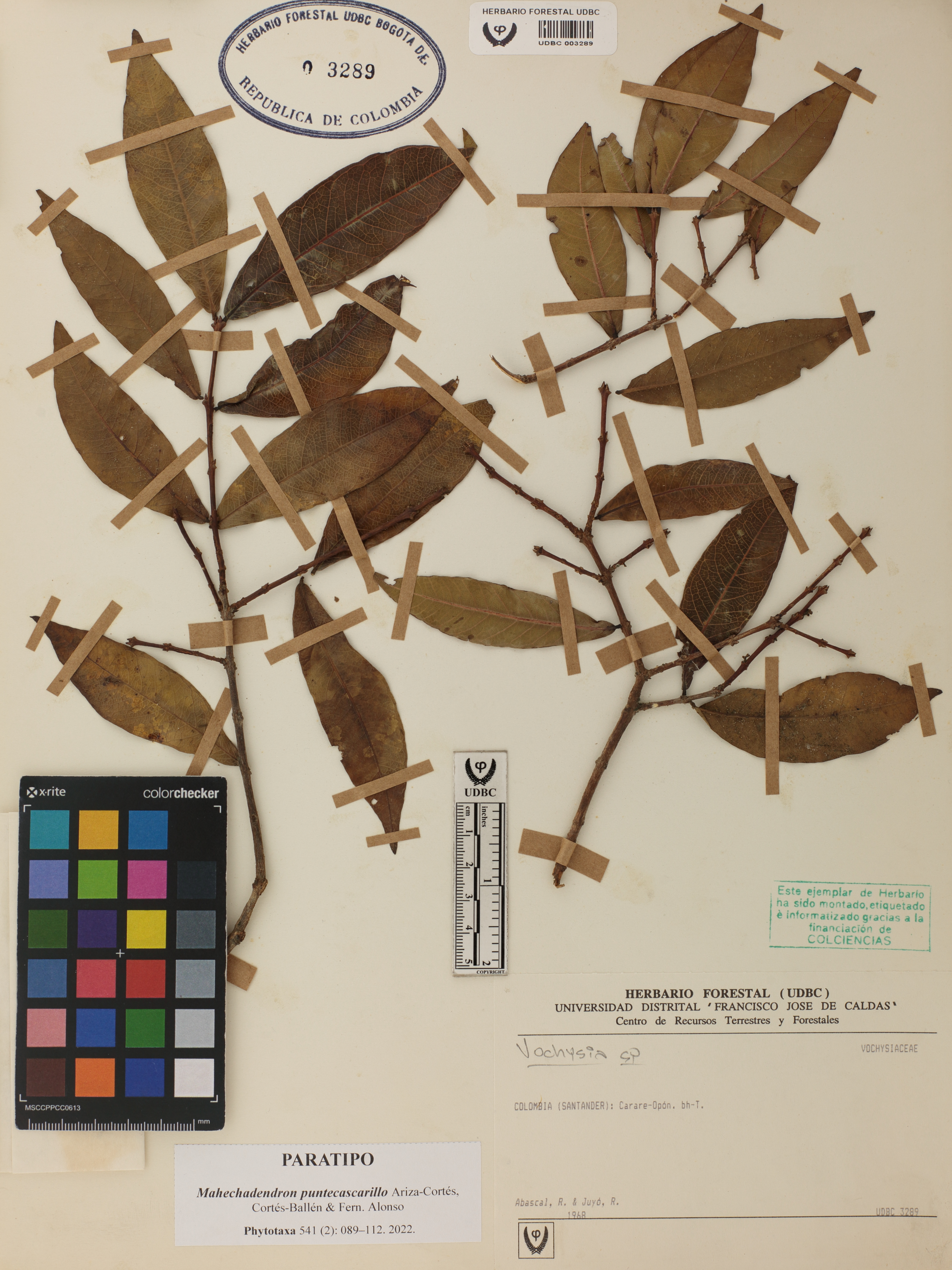 Fotografía del ejemplar Abascal, R. s.n., Paratipo de Mahechadendron puntecascarillo