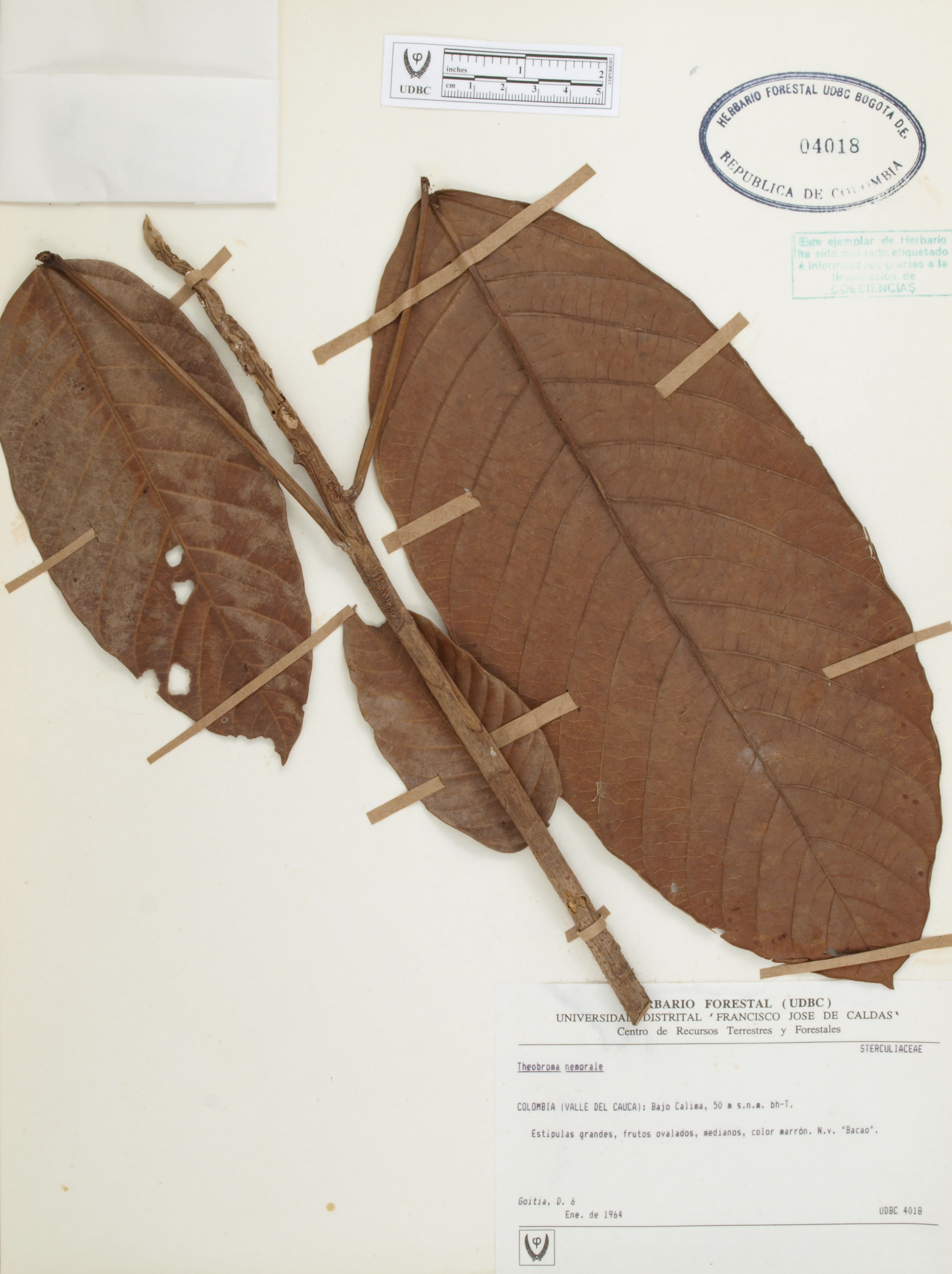 Fotografía del ejemplar Goitia, D. 6, determinado como Theobroma nemorale