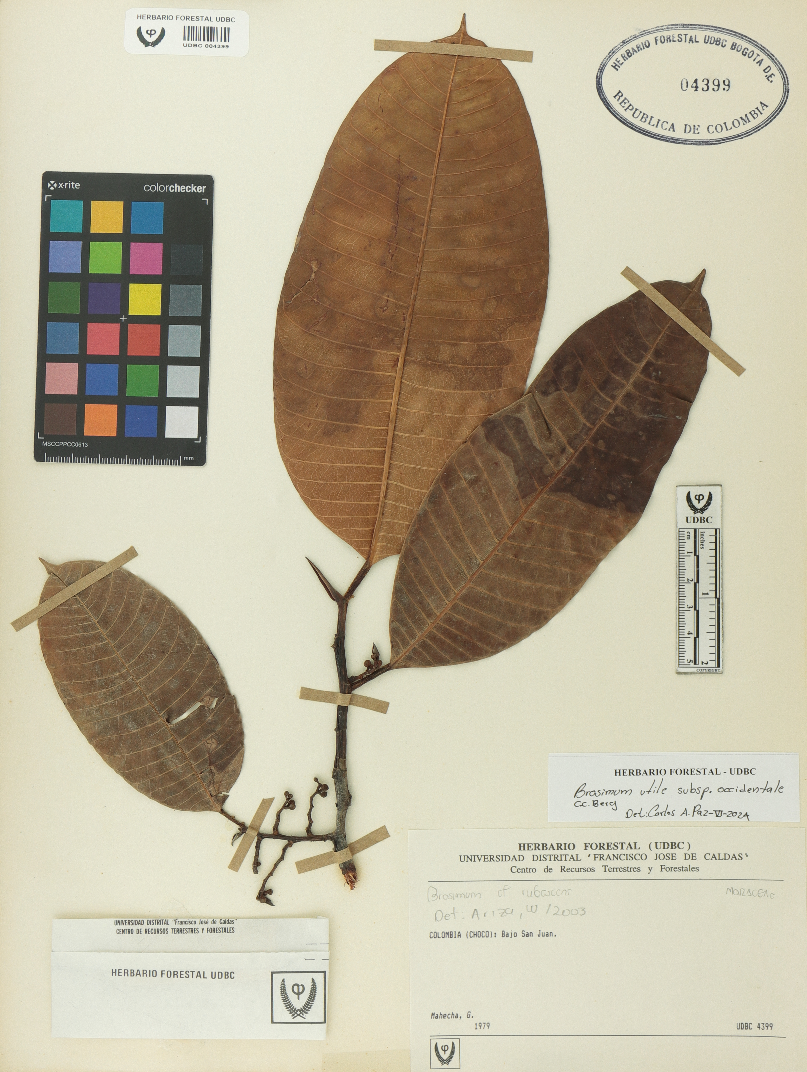 Fotografía del ejemplar Mahecha, G., determinado como Brosimum utile subsp. occidentale en el año 2024
