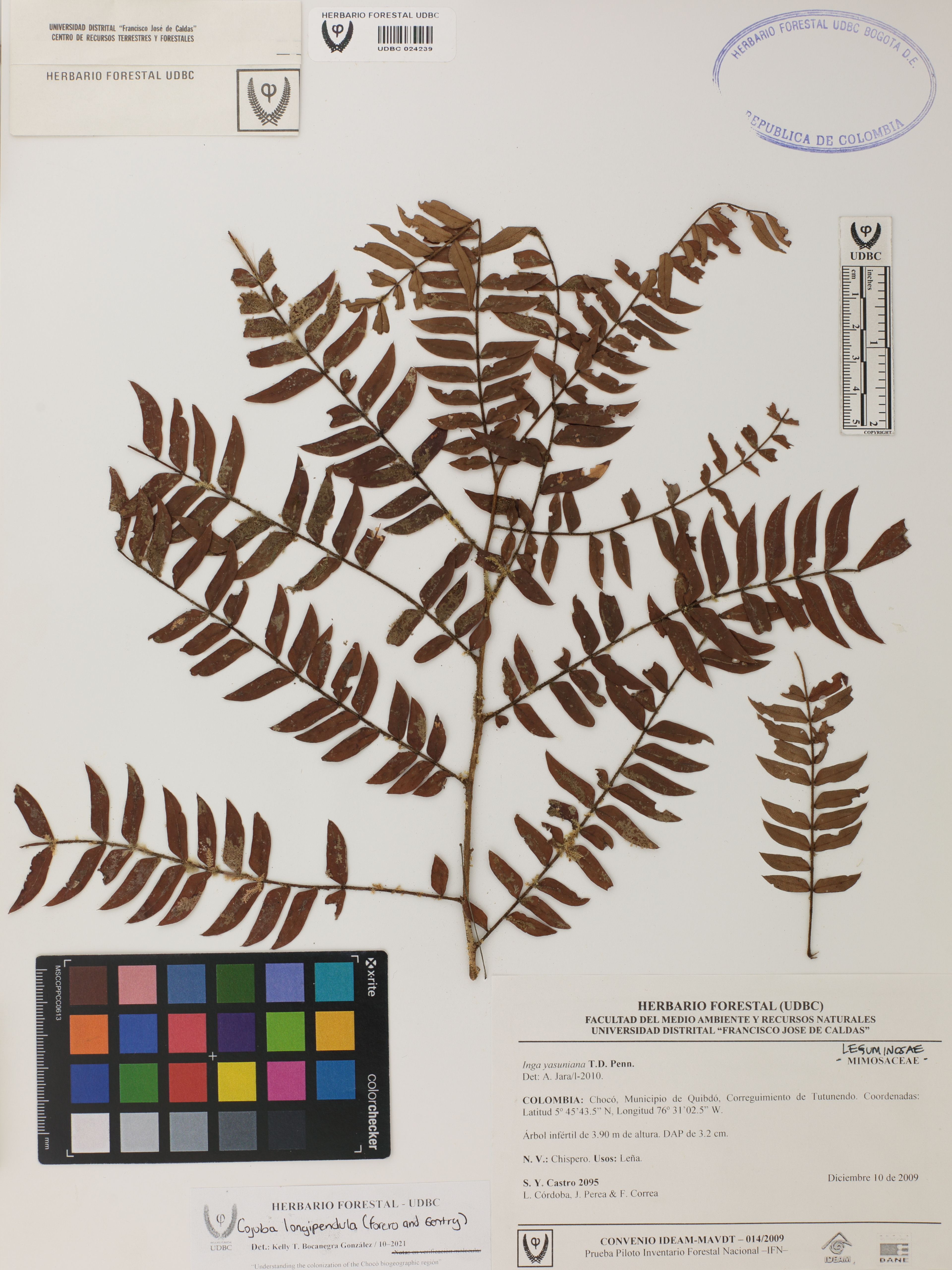 Fotografía del ejemplar Castro, S. 2095, determinado como Cojoba longipendula en el año 2021