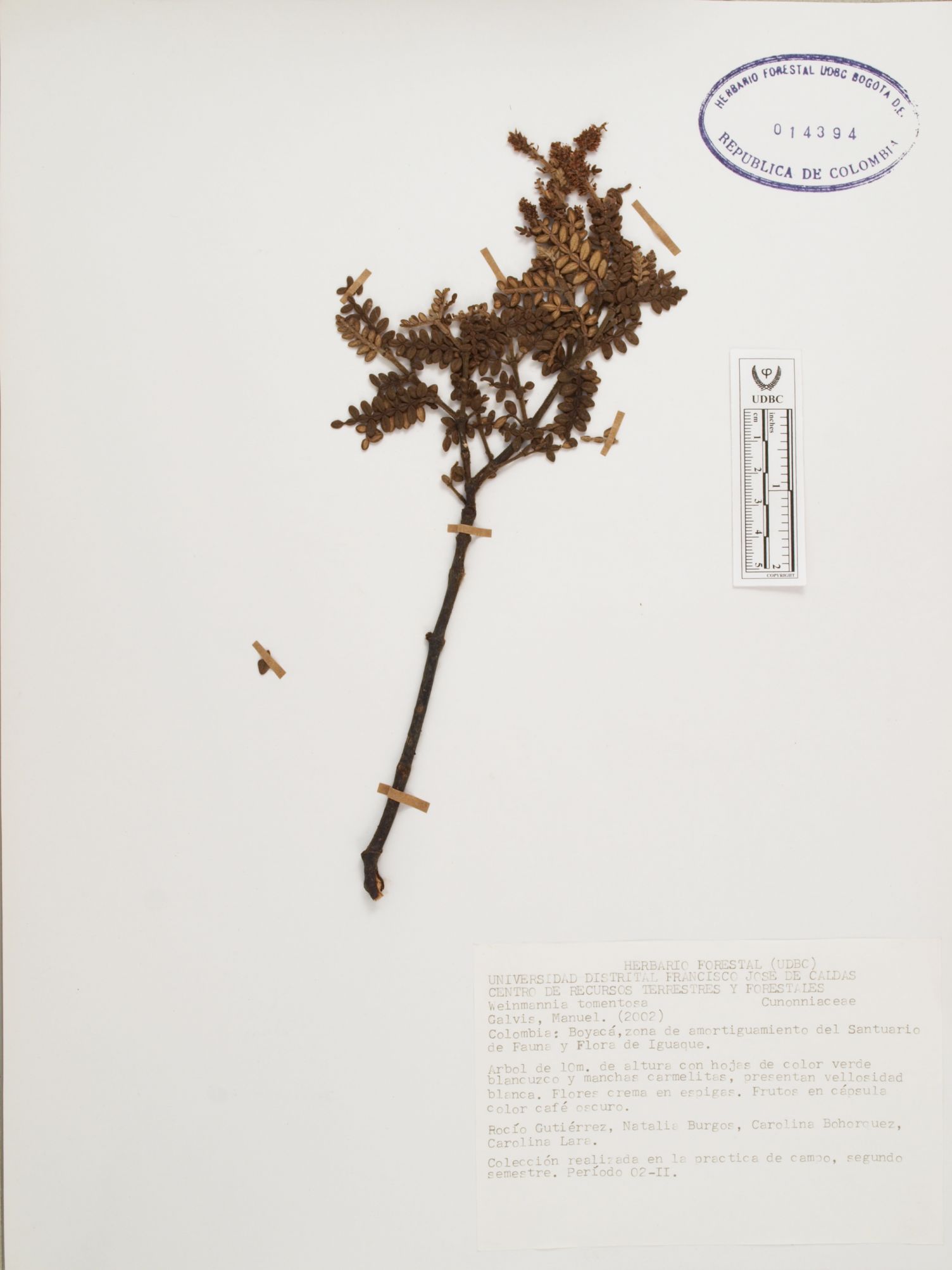 Fotografía del ejemplar Gutiérrez, R., determinado como Weinmannia tomentosa en el año 2002