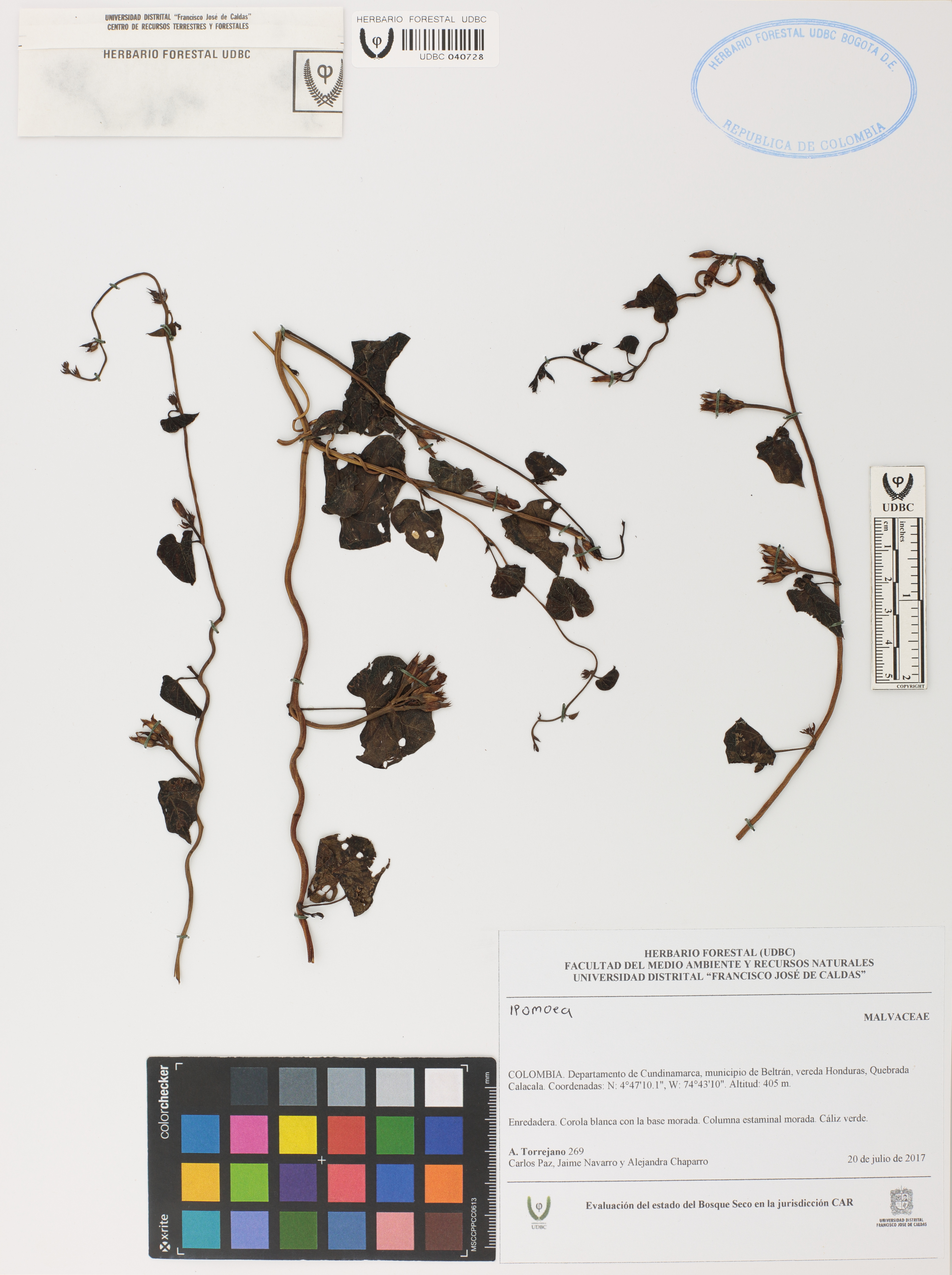 Fotografía del ejemplar Torrejano, A. 269, determinado como Ipomoea sp.