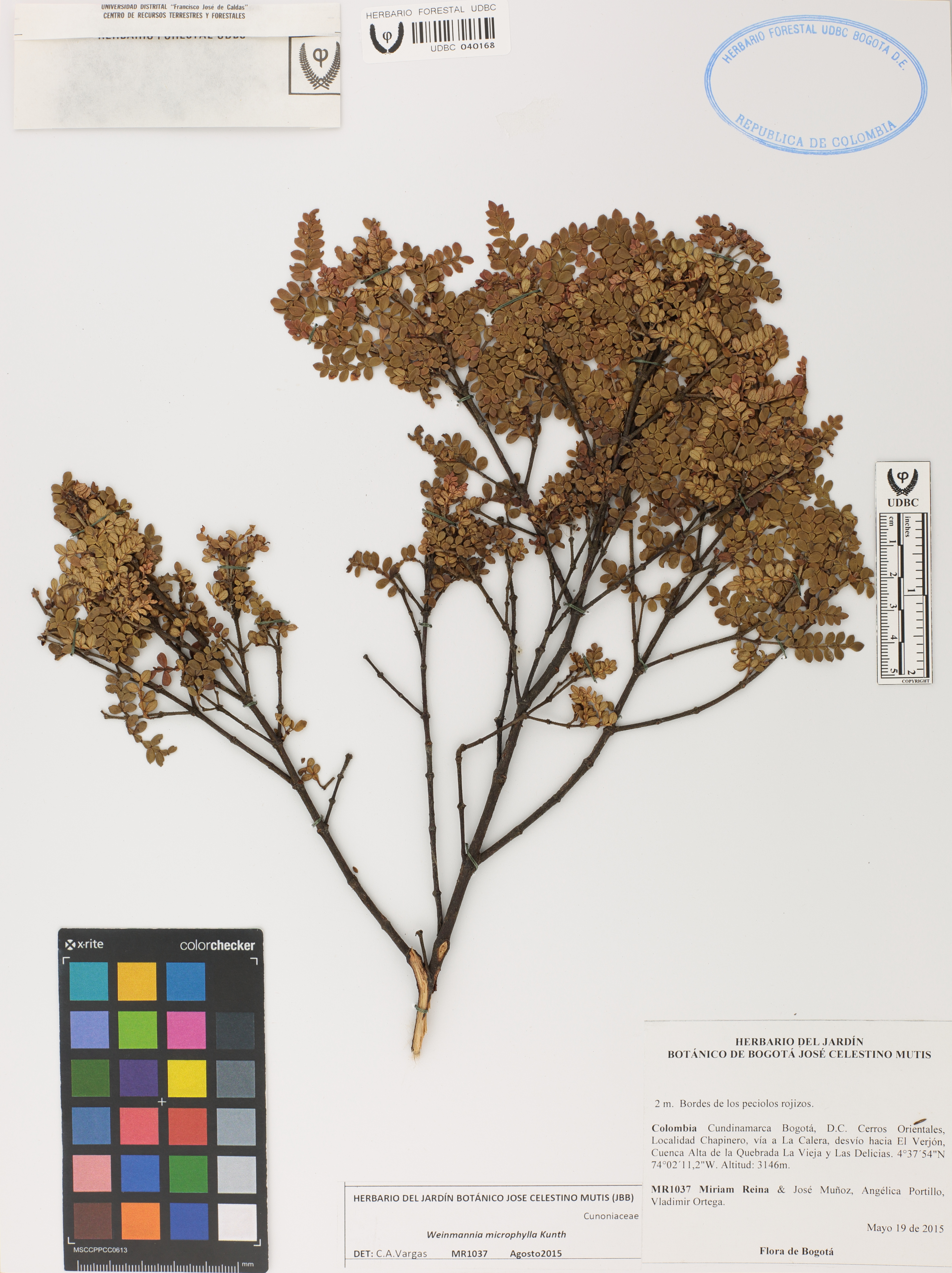 | dc.description | Fotografía del ejemplar Reina, M. 1037, determinado como Weinmannia microphylla en el año 2015 | |