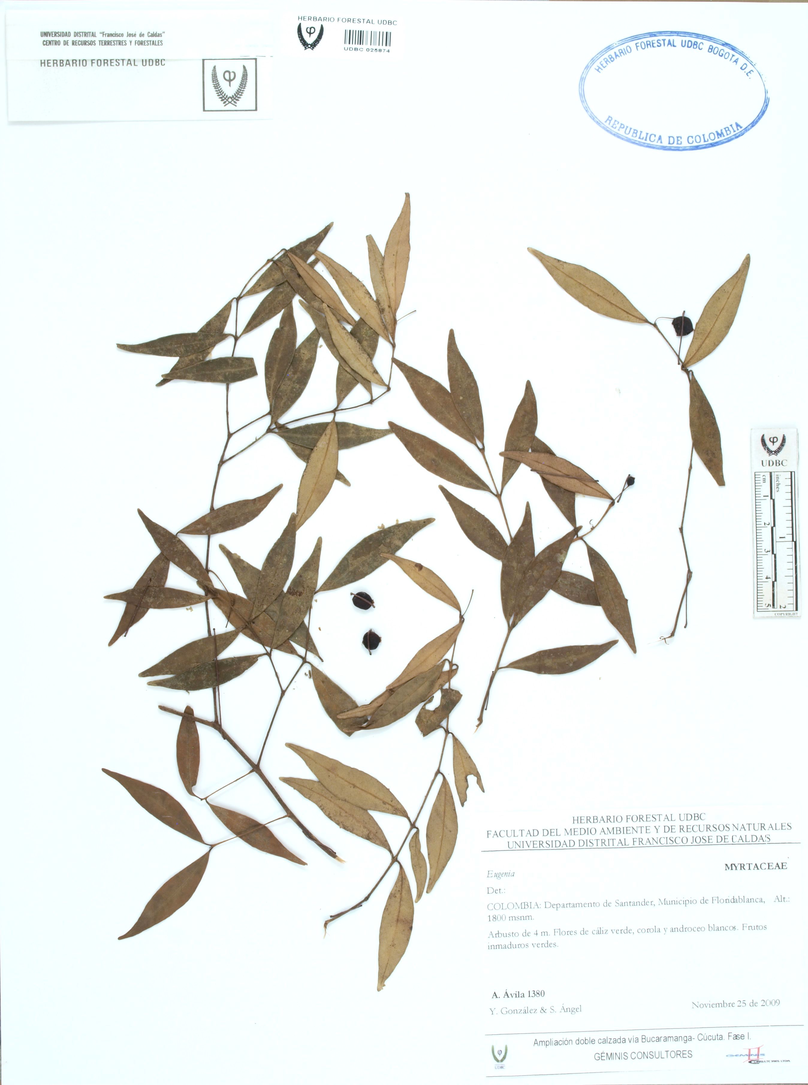 Fotografía del ejemplar Ávila, F. 1380, determinado como Eugenia sp.