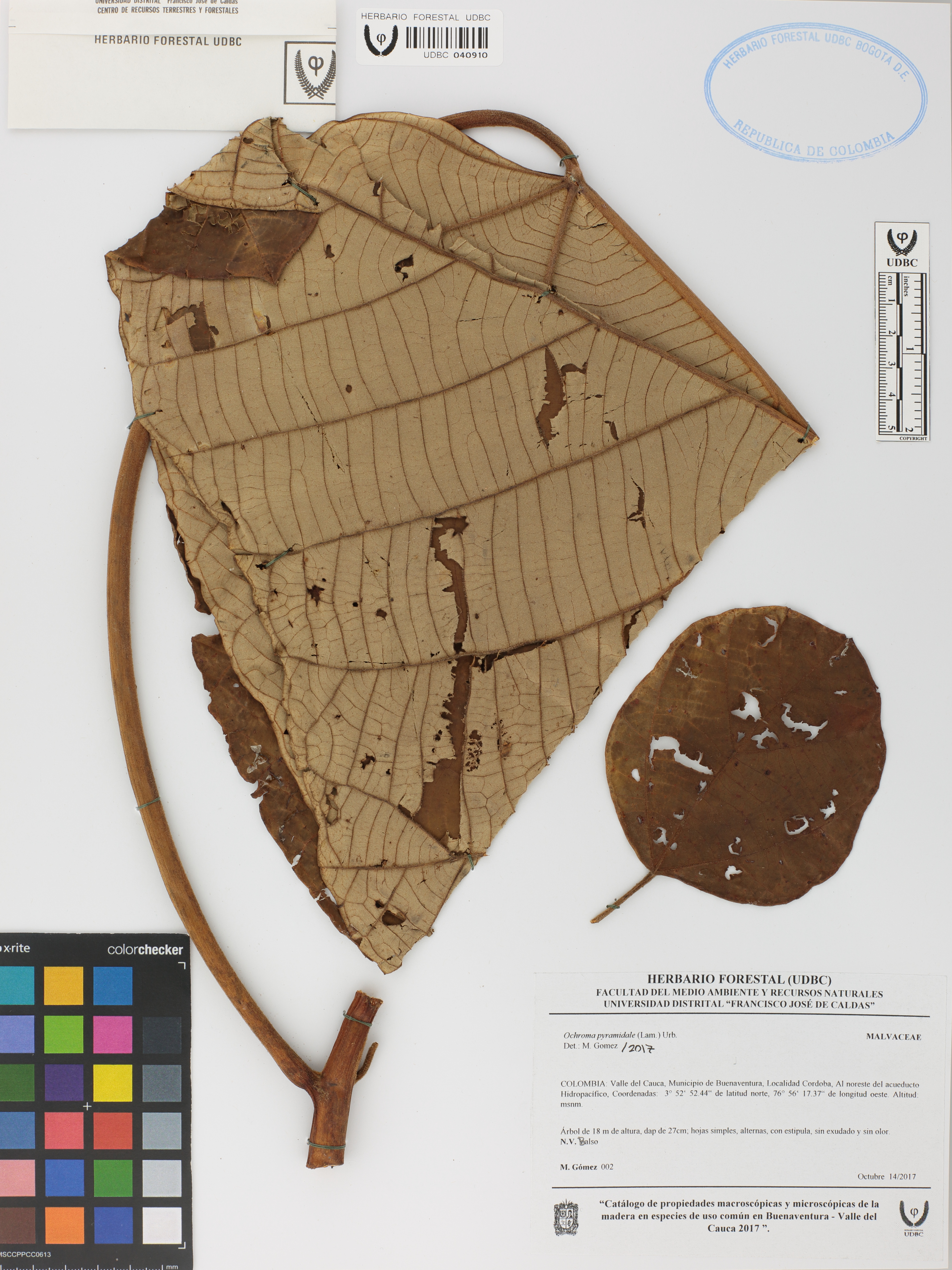 Fotografía del ejemplar Gómez, M. 2, determinado como Ochroma pyramidale en el año 2017