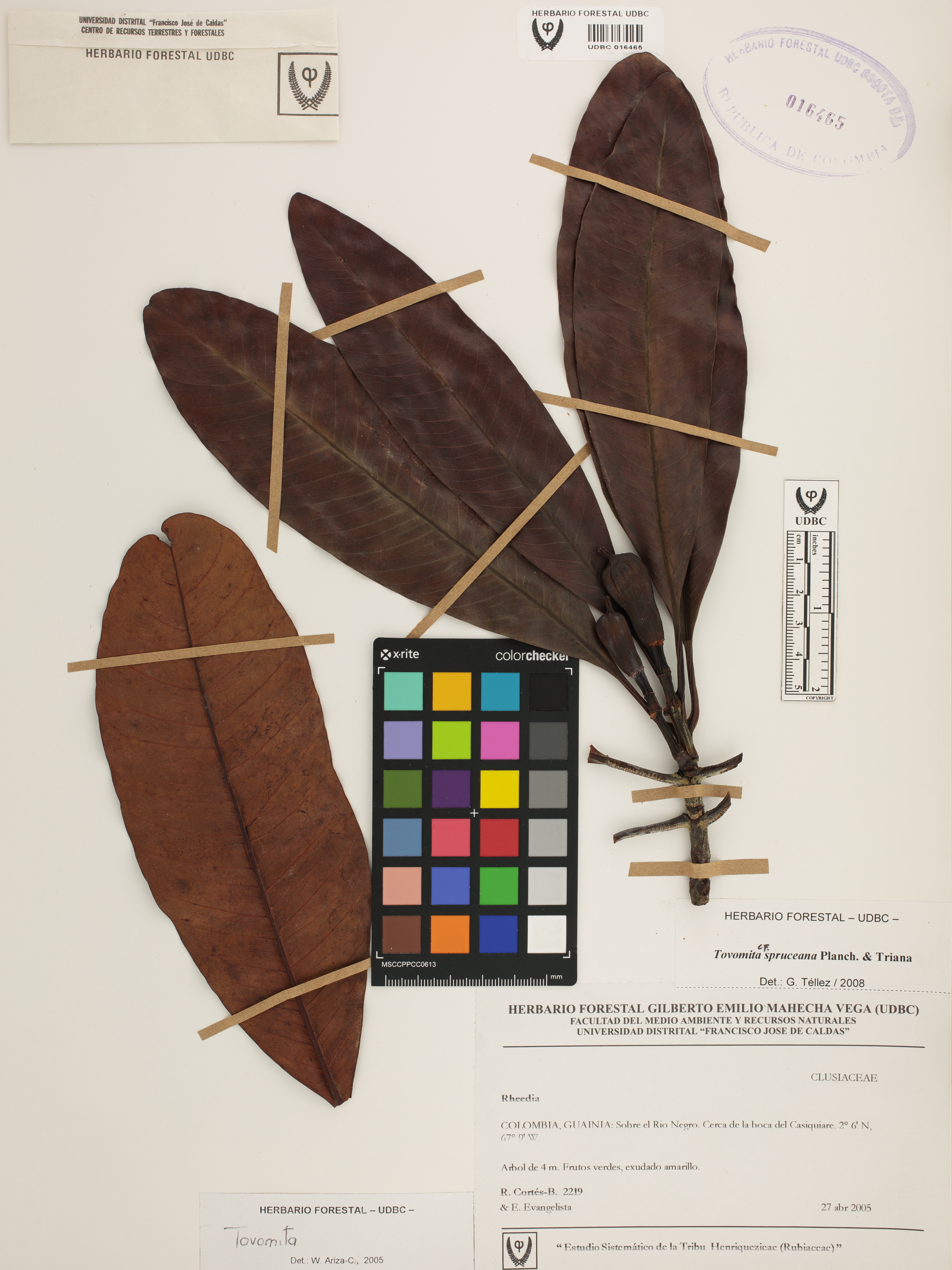 Fotografía del ejemplar Cortés-B., R. 2219, determinado como Tovomita spruceana en el año 2008