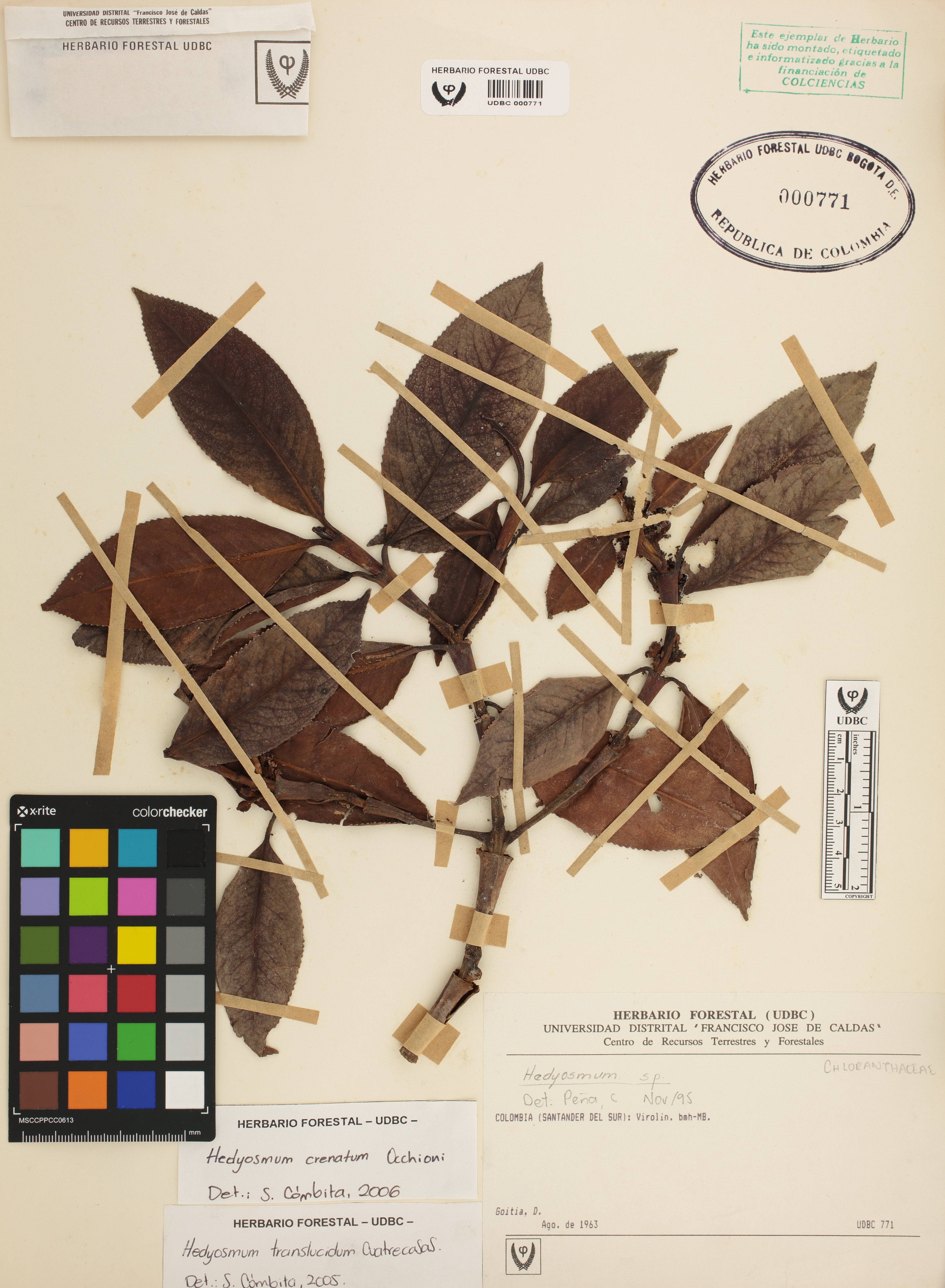 Fotografía del ejemplar Goitia, D., determinado como Hedyosmum crenatum en el año 2006