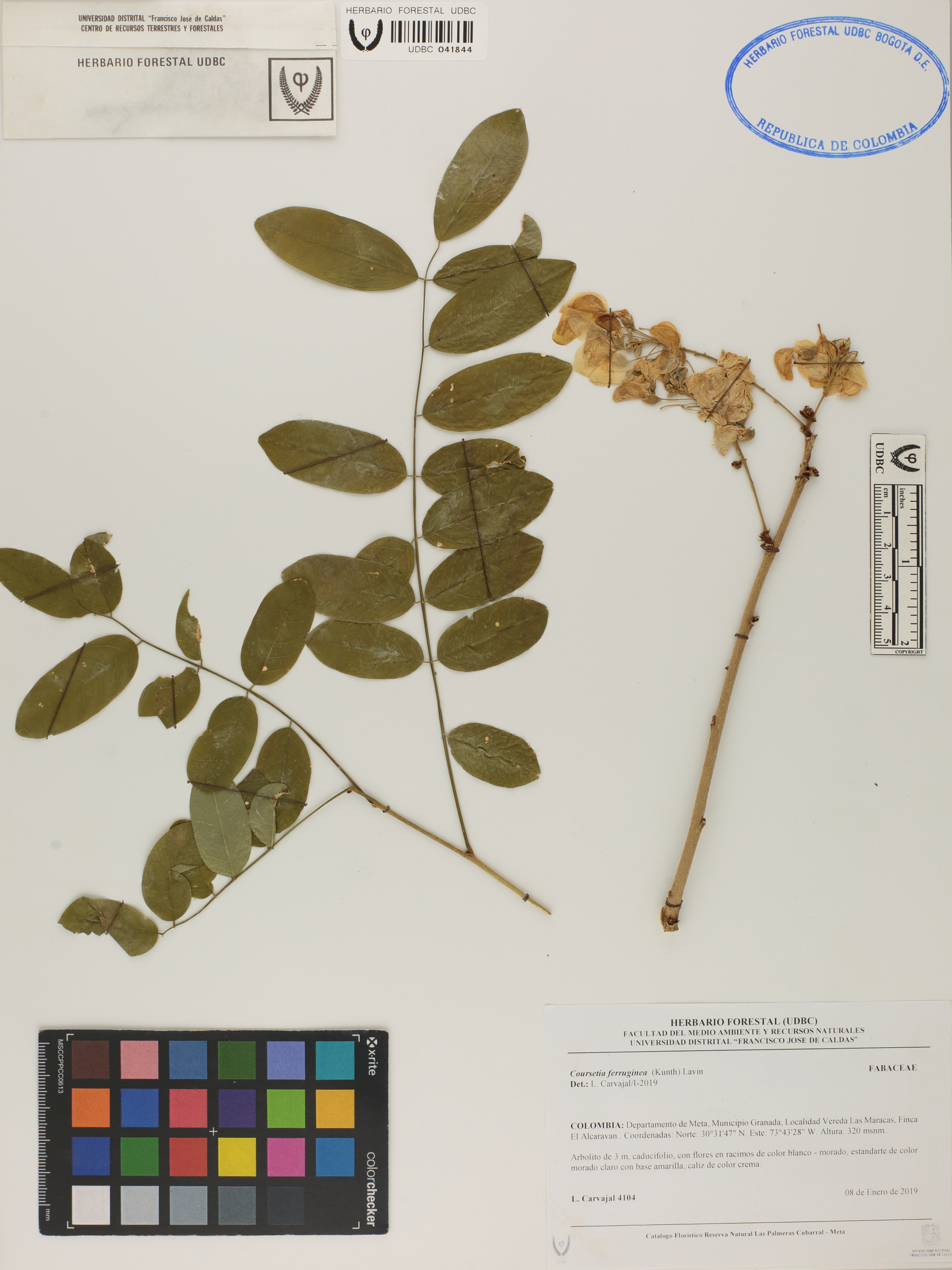 Fotografía del ejemplar Carvajal, L. 4104, determinado como Coursetia ferruginea en el año 2019