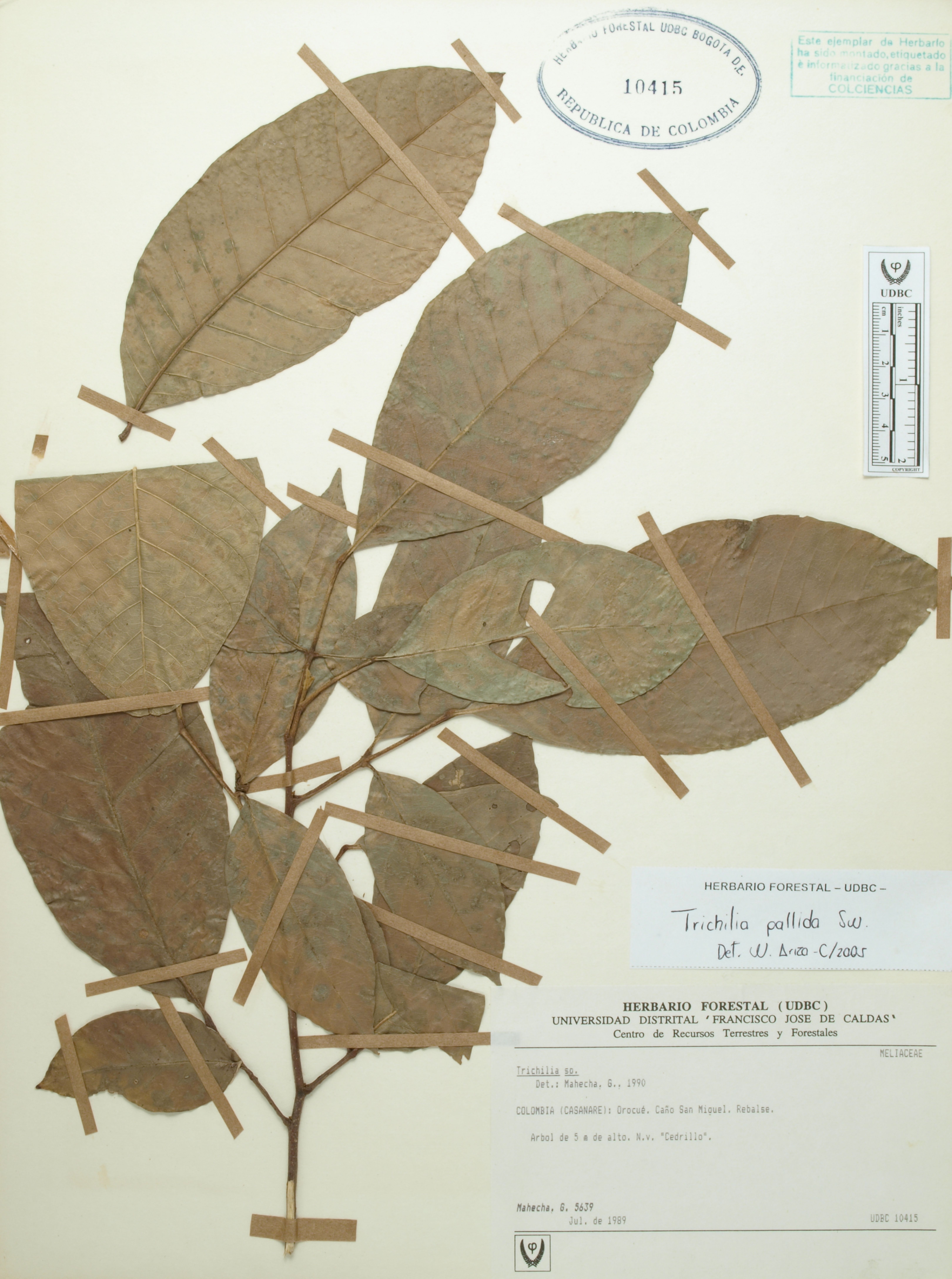 Fotografía del ejemplar Mahecha, G. 5639, determinado como Trichilia pallida en el año 2005