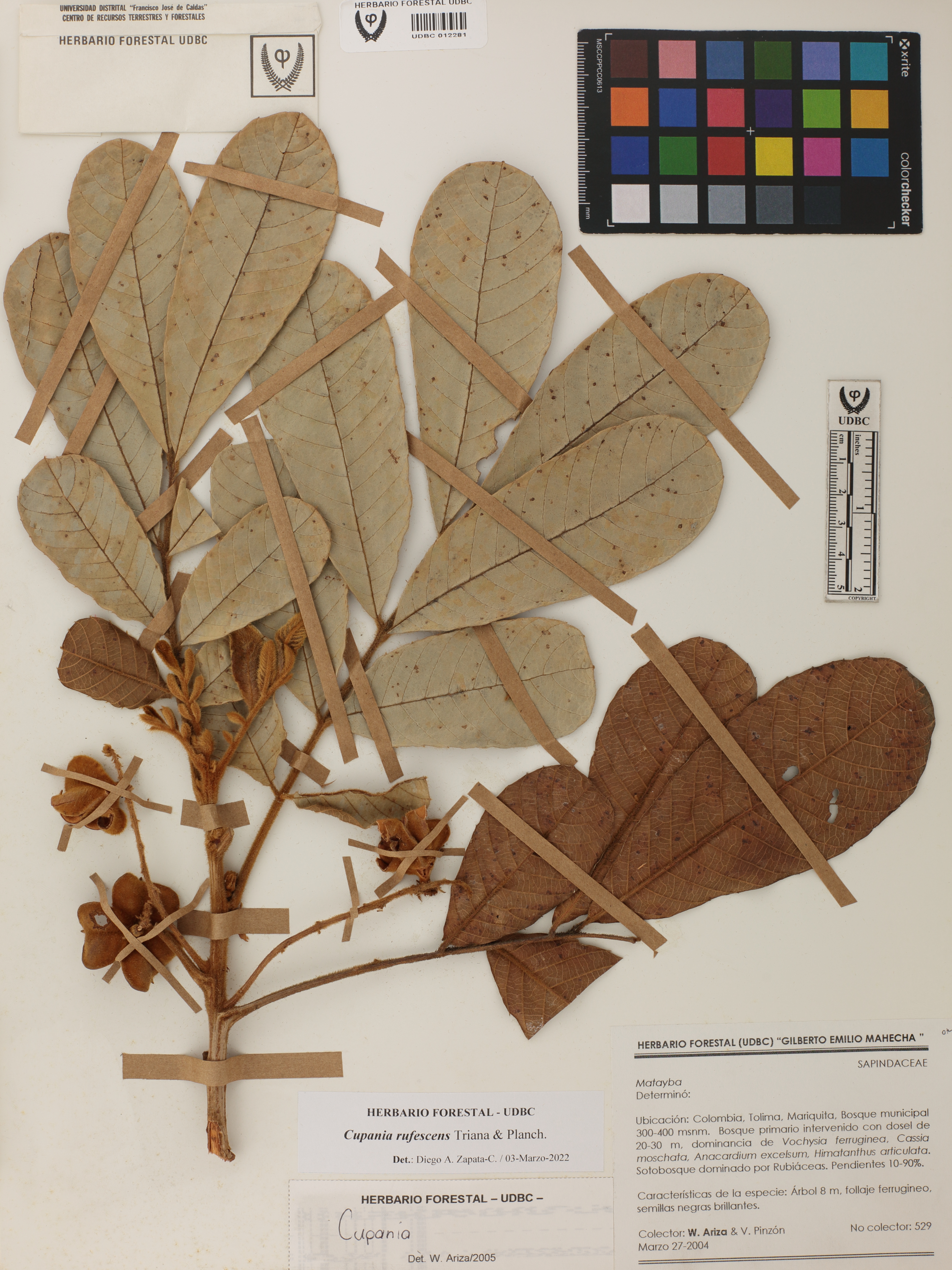 Fotografía del ejemplar Ariza, W. 529, determinado como Cupania rufescens en el año 2022