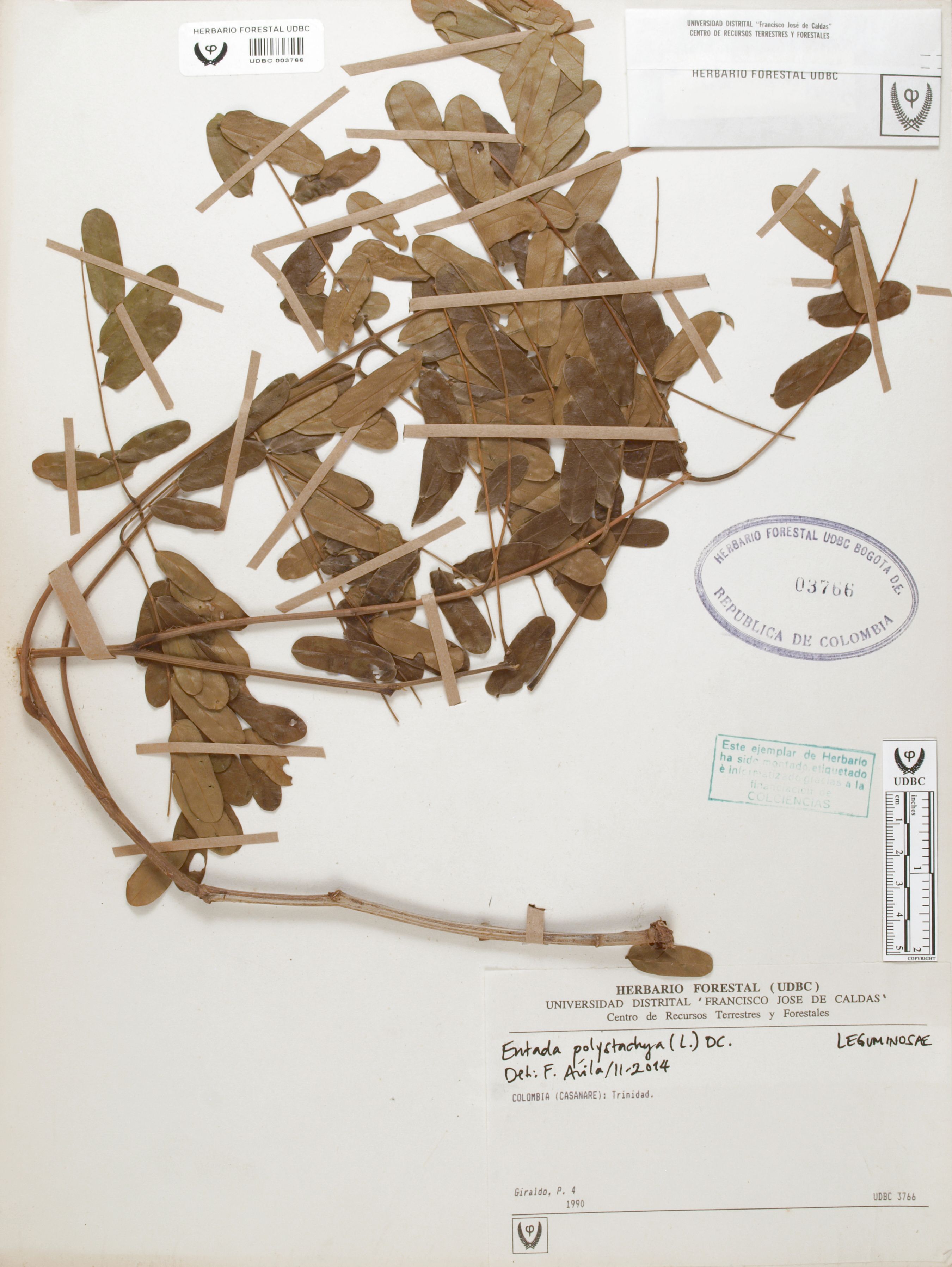 Fotografía del ejemplar Giraldo, P. 4, determinado como Entada polystachya en el año 2014