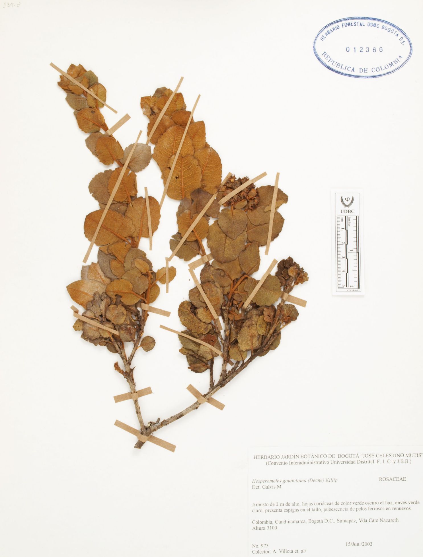 Fotografía del ejemplar Villota, A., determinado como Hesperomeles goudotiana en el año 2002