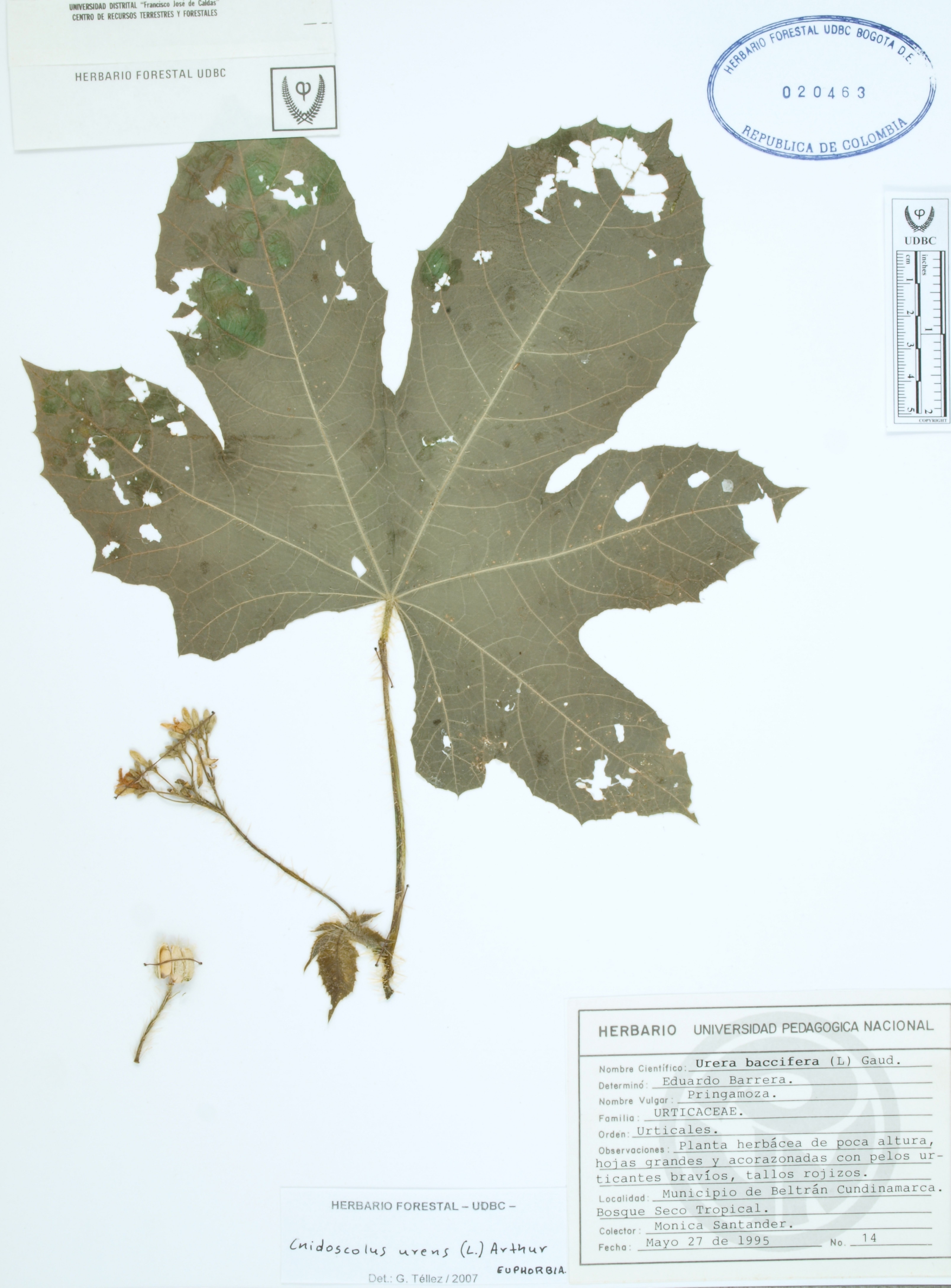 | dc.description | Fotografía del ejemplar Santander, M. 14, determinado como Cnidoscolus urens en el año 2007 | |