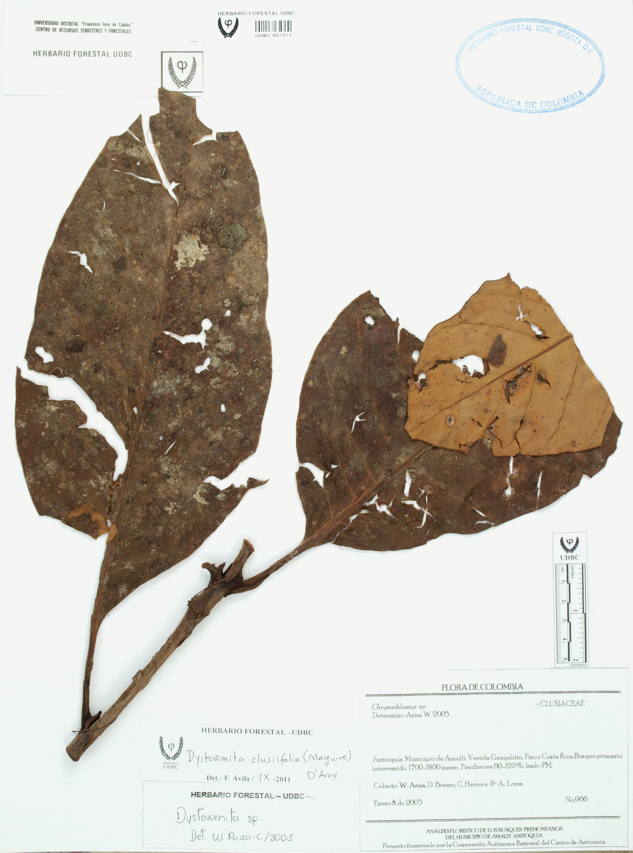 Fotografía del ejemplar Ariza, W. 966, determinado como Dystovomita clusiifolia en el año 2011