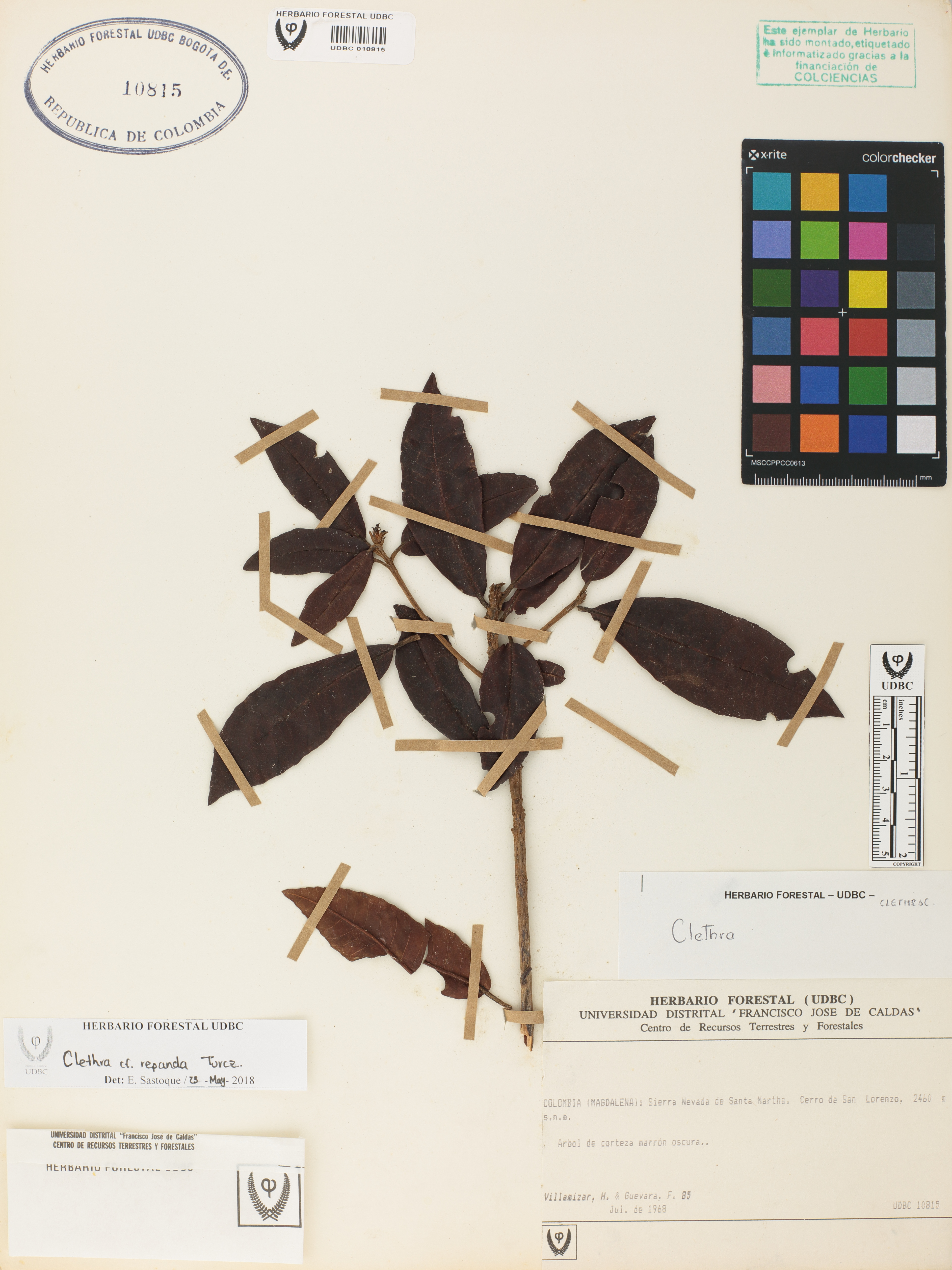 Fotografía del ejemplar Villamizar, H. 85, determinado como Clethra repanda en el año 2018