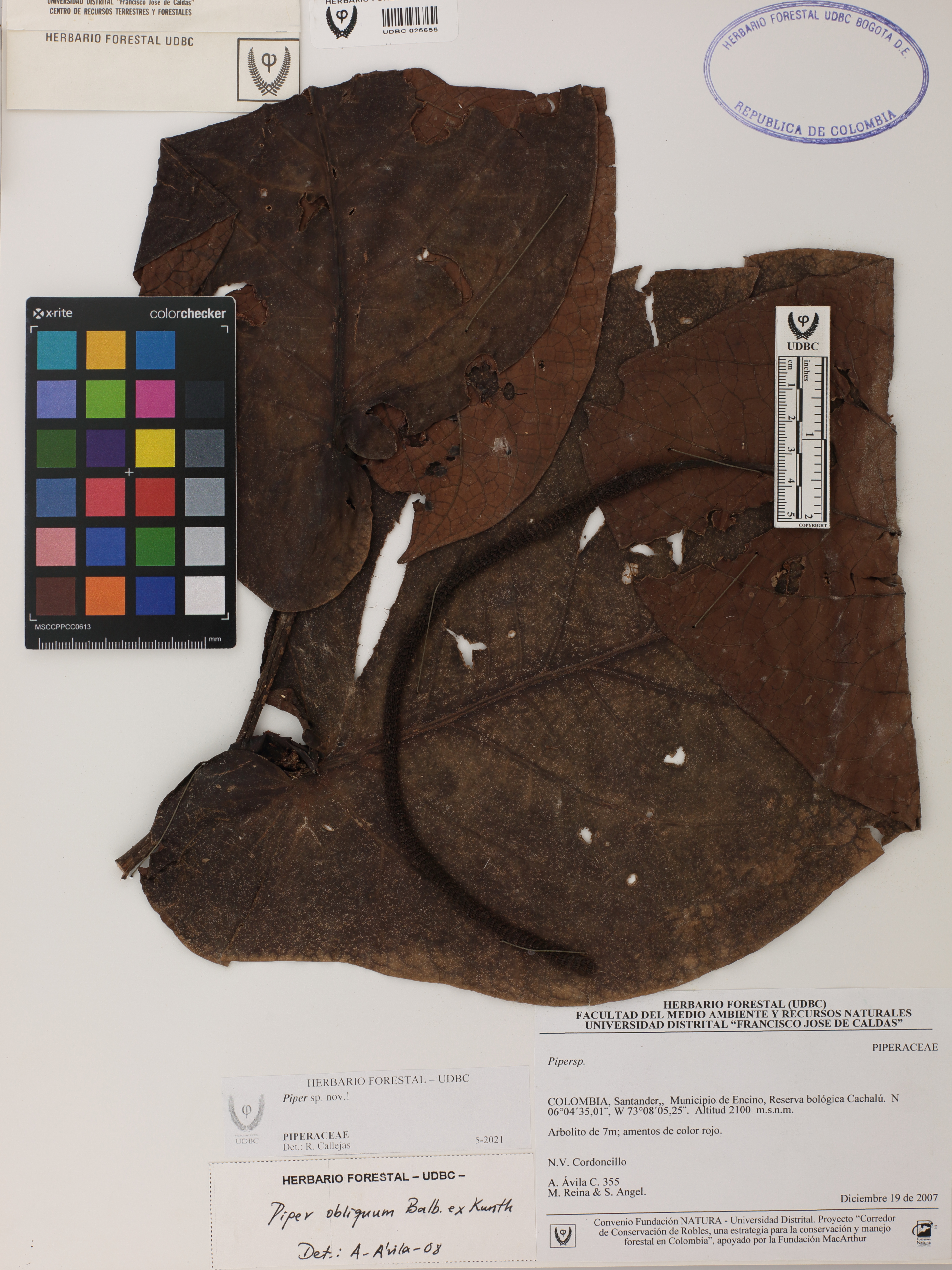 Fotografía del ejemplar Ávila-C., A. 355, determinado como Piper sp. en el año 2021