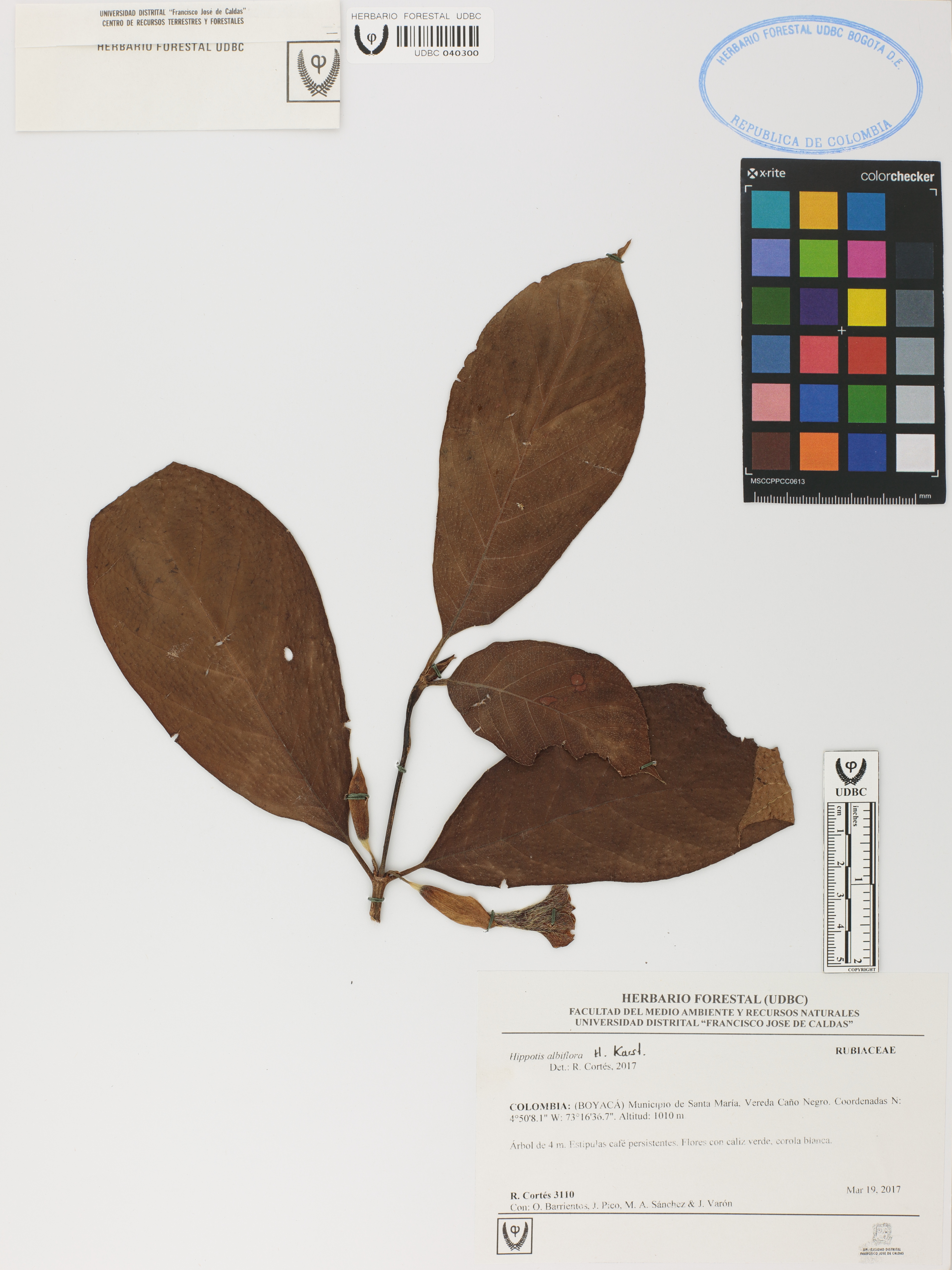Fotografía del ejemplar Cortés, R. 3110, determinado como Hippotis albiflora en el año 2017