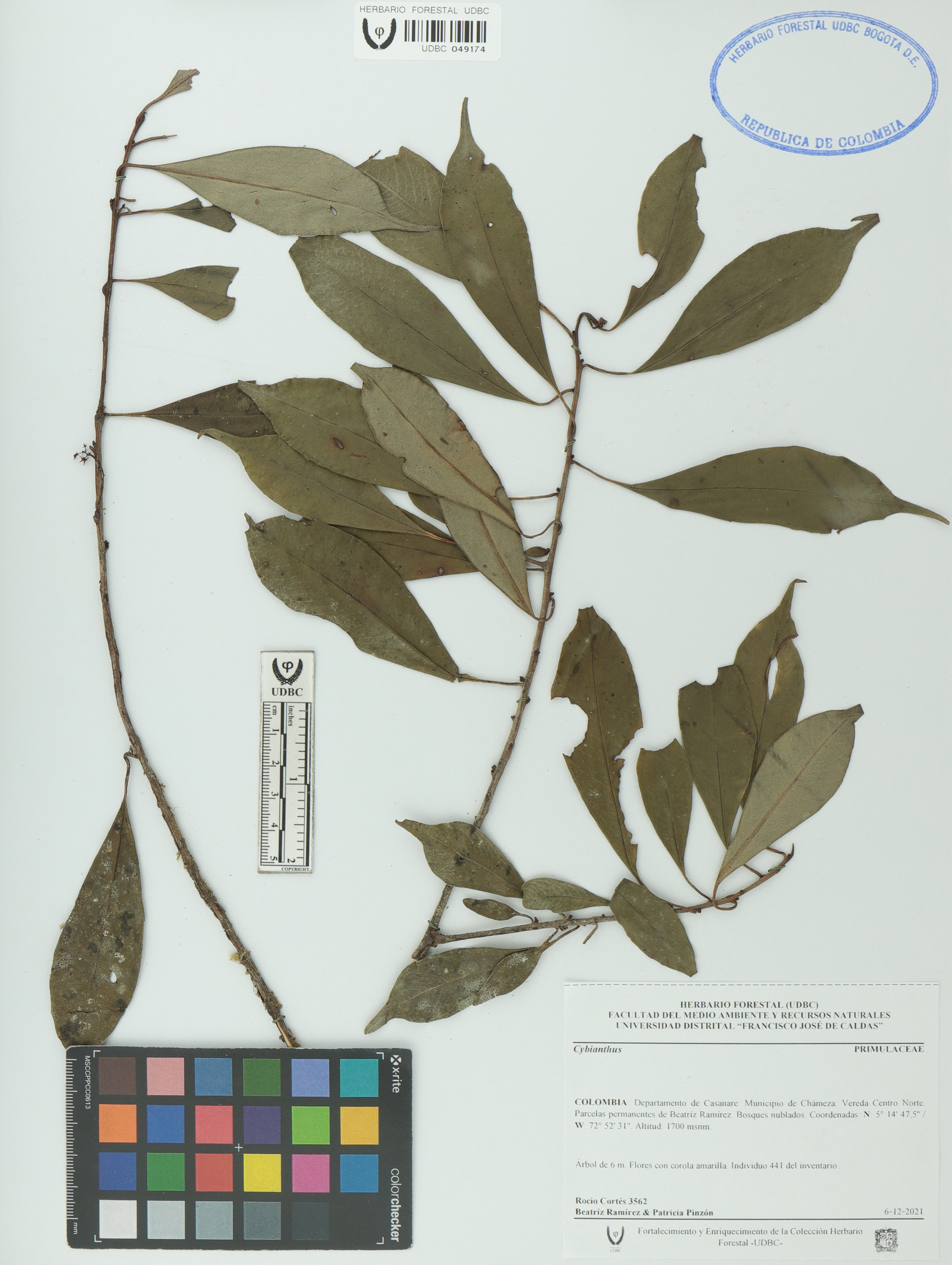 Fotografía del ejemplar Cortés, R. 3562, determinado como Cybianthus sp.