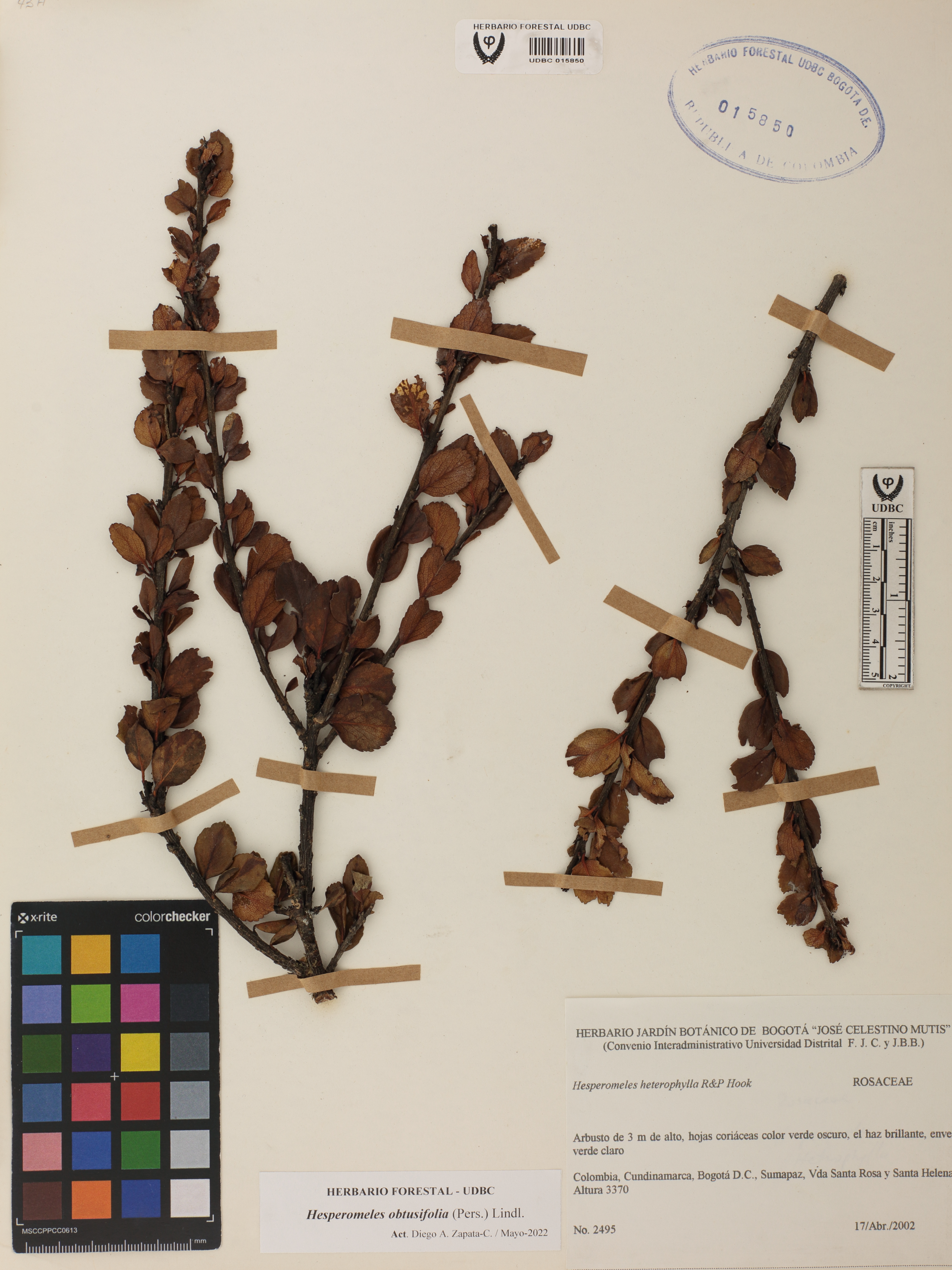 | dc.description | Fotografía del ejemplar SD 2495, determinado como Hesperomeles obtusifolia | |