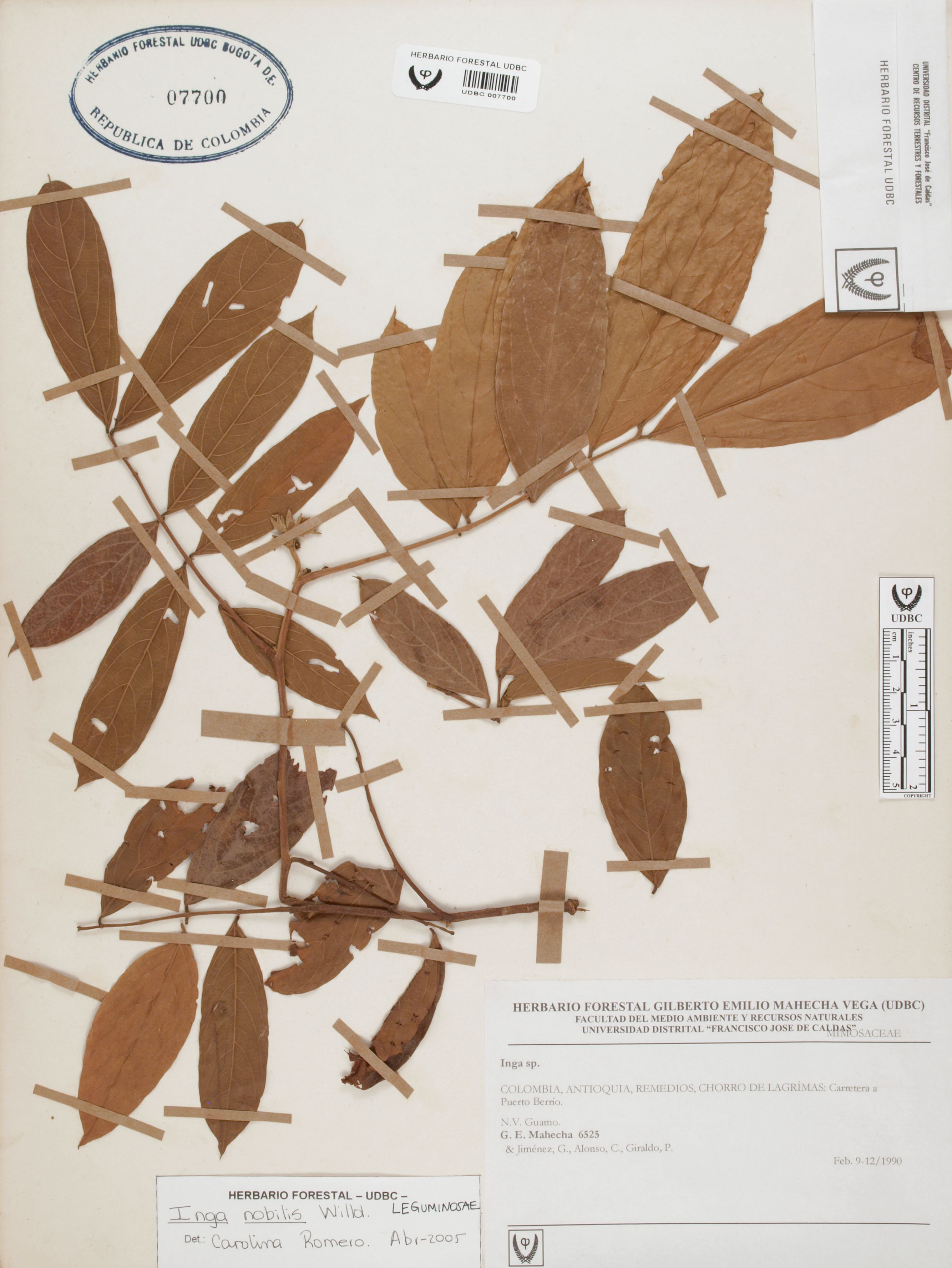 Fotografía del ejemplar Mahecha, G. 6525, determinado como Inga nobilis en el año 2005