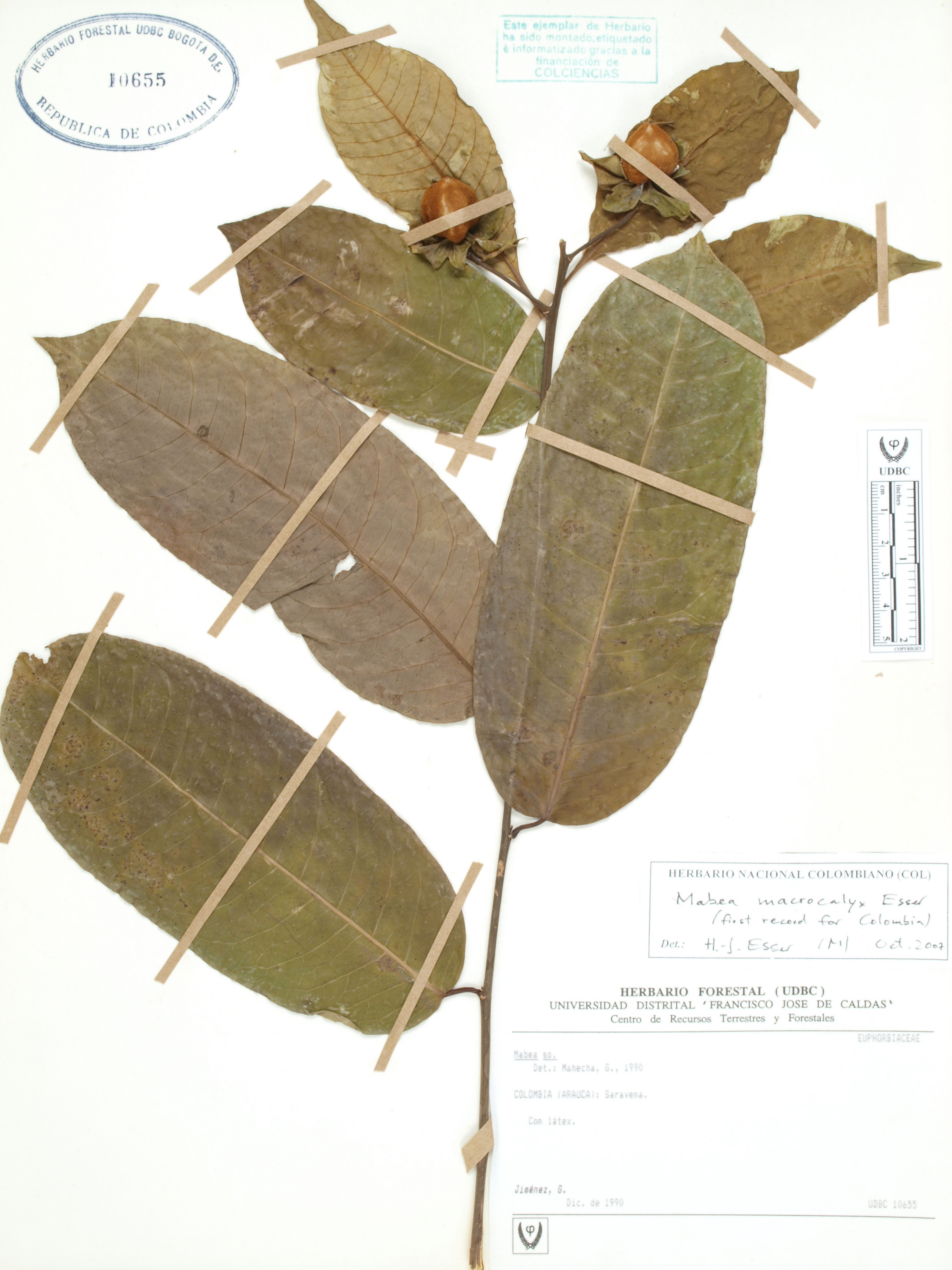 Fotografía del ejemplar Jiménez, G., determinado como Mabea macrocalyx en el año 2007