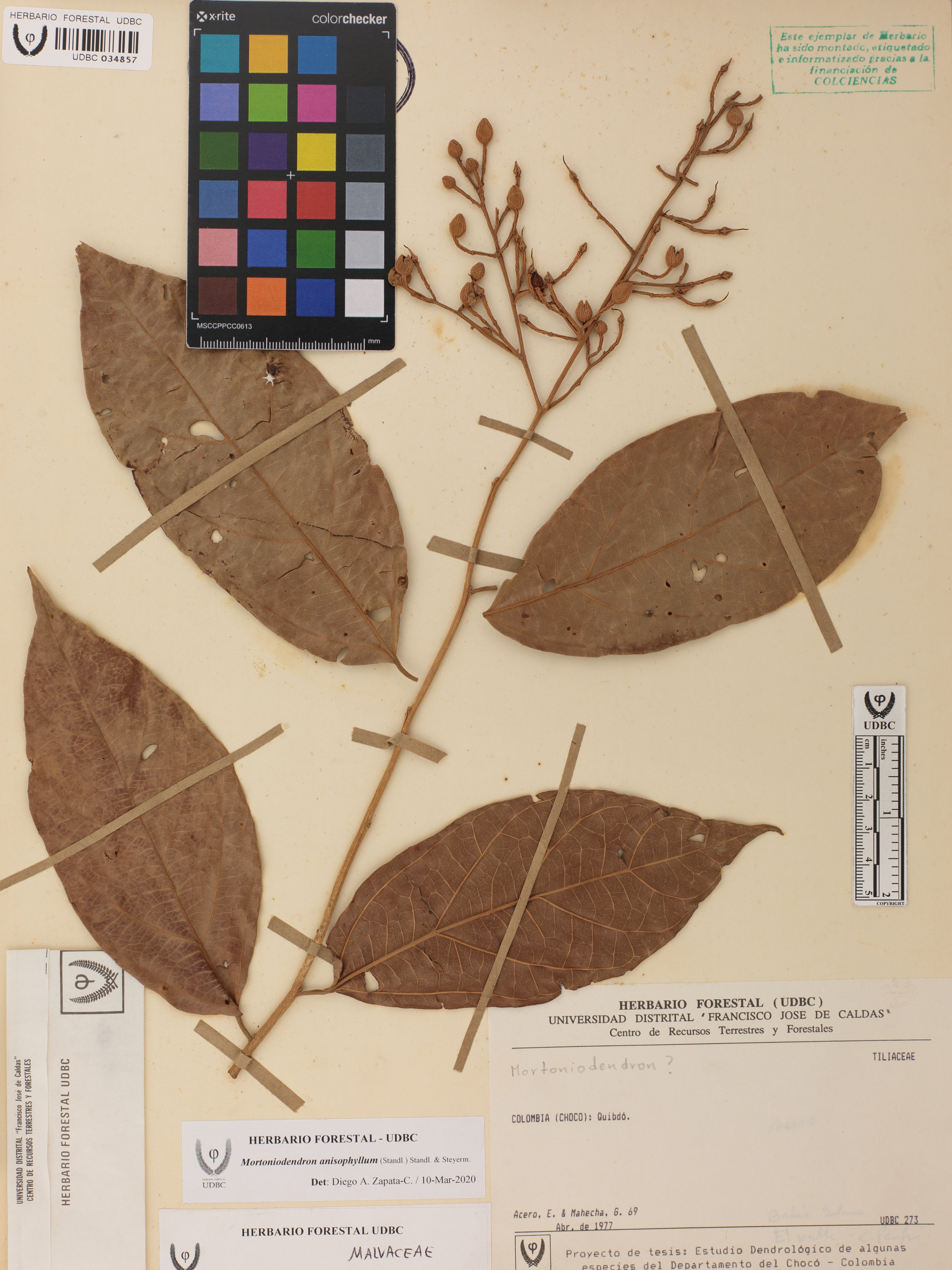 Fotografía del ejemplar Acero, E. 69, determinado como Mortoniodendron anisophyllum en el año 2020