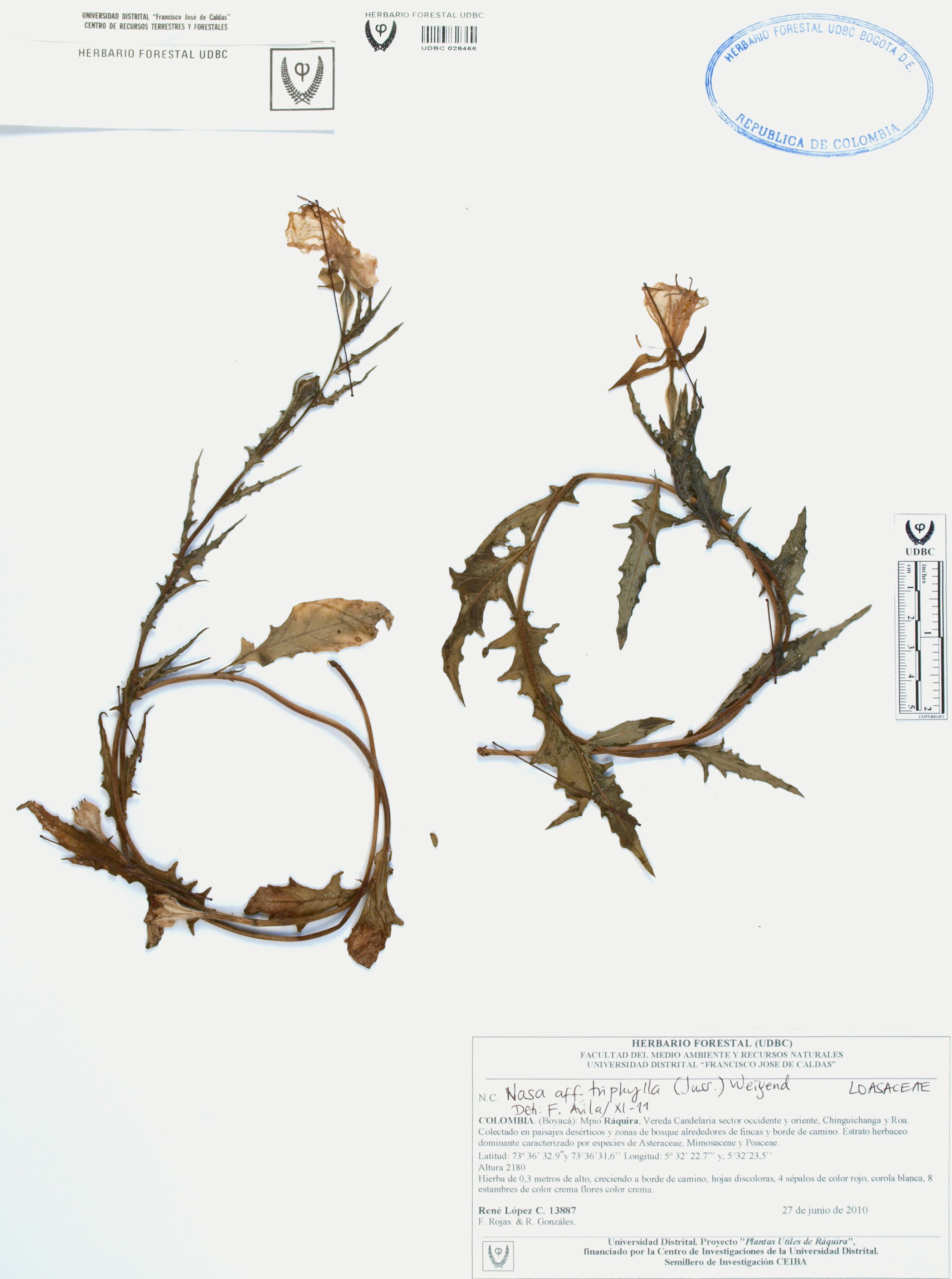 Fotografía del ejemplar López, R. 13887, determinado como Nasa triphylla en el año 2011