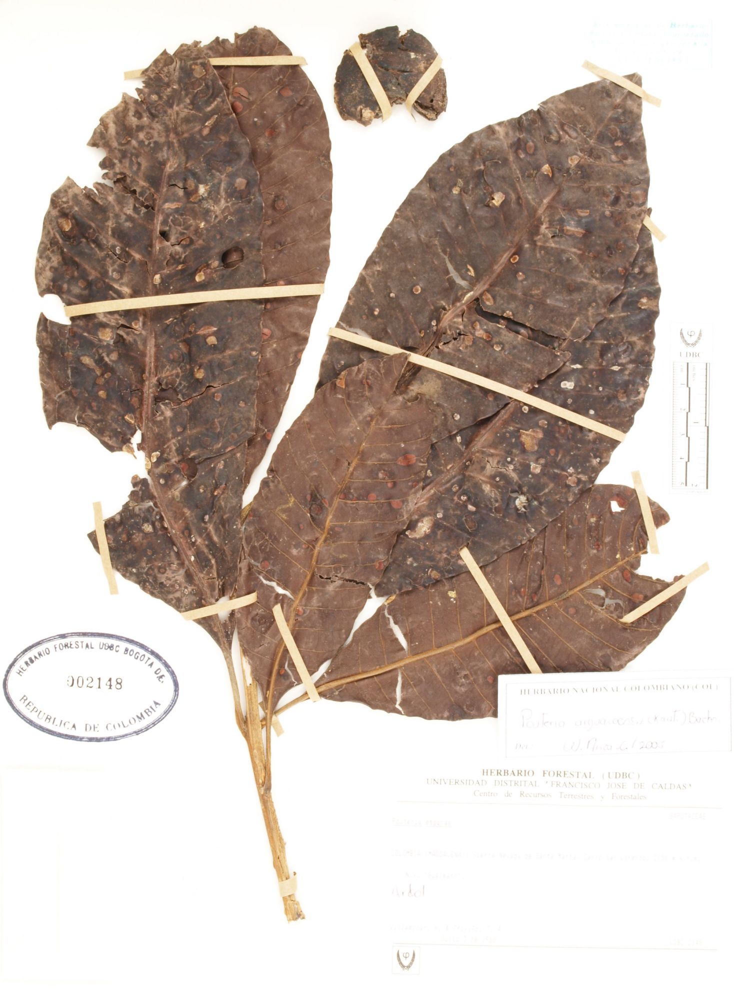 Fotografía del ejemplar Villamizar, H. 4, determinado como Pouteria arguacoensium en el año 2005