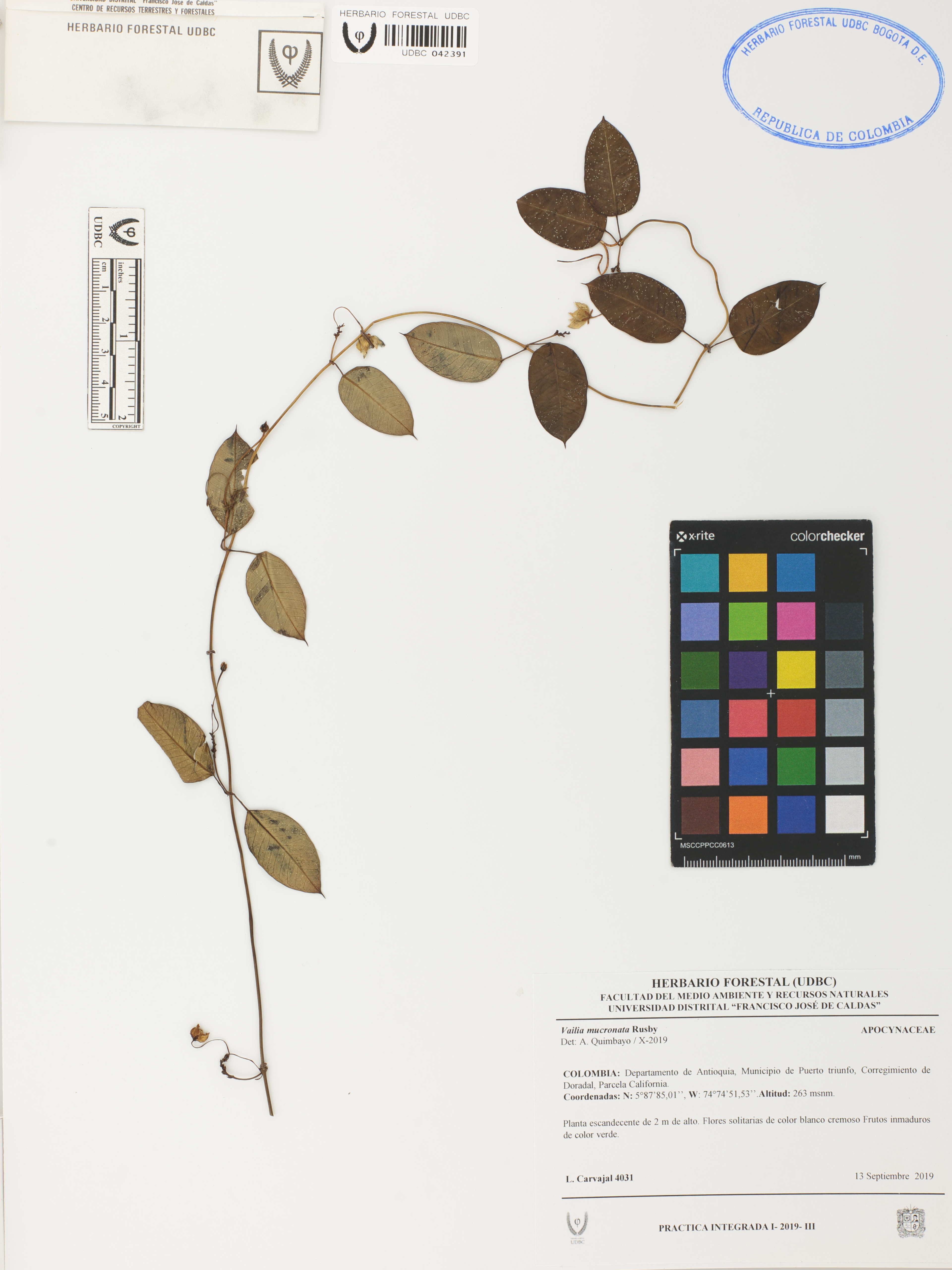 Fotografía del ejemplar Carvajal, L. 4031, determinado como Vailia mucronata en el año 2019