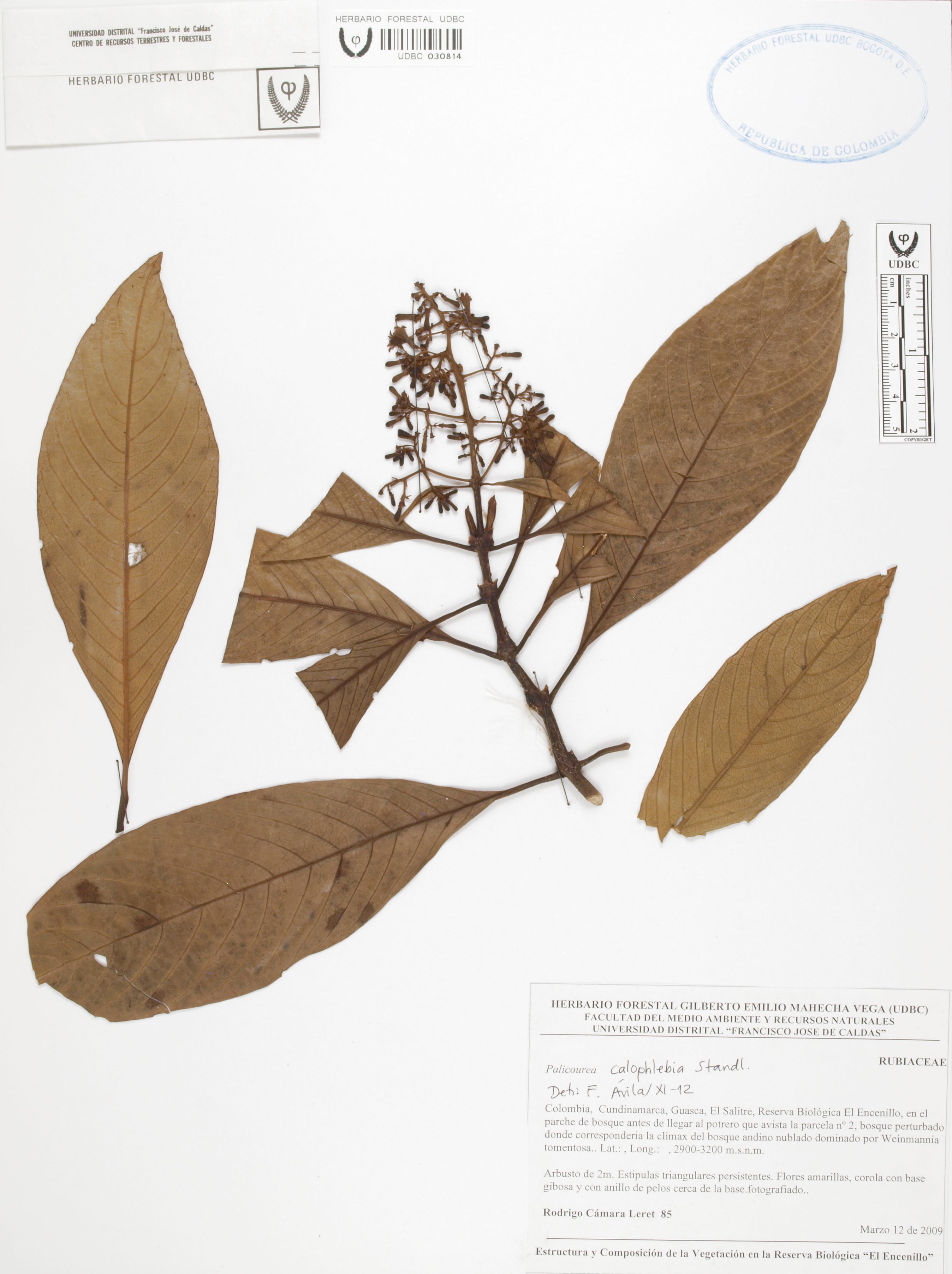 Fotografía del ejemplar Cámara, R. 85, determinado como Palicourea sulphurea en el año 2021